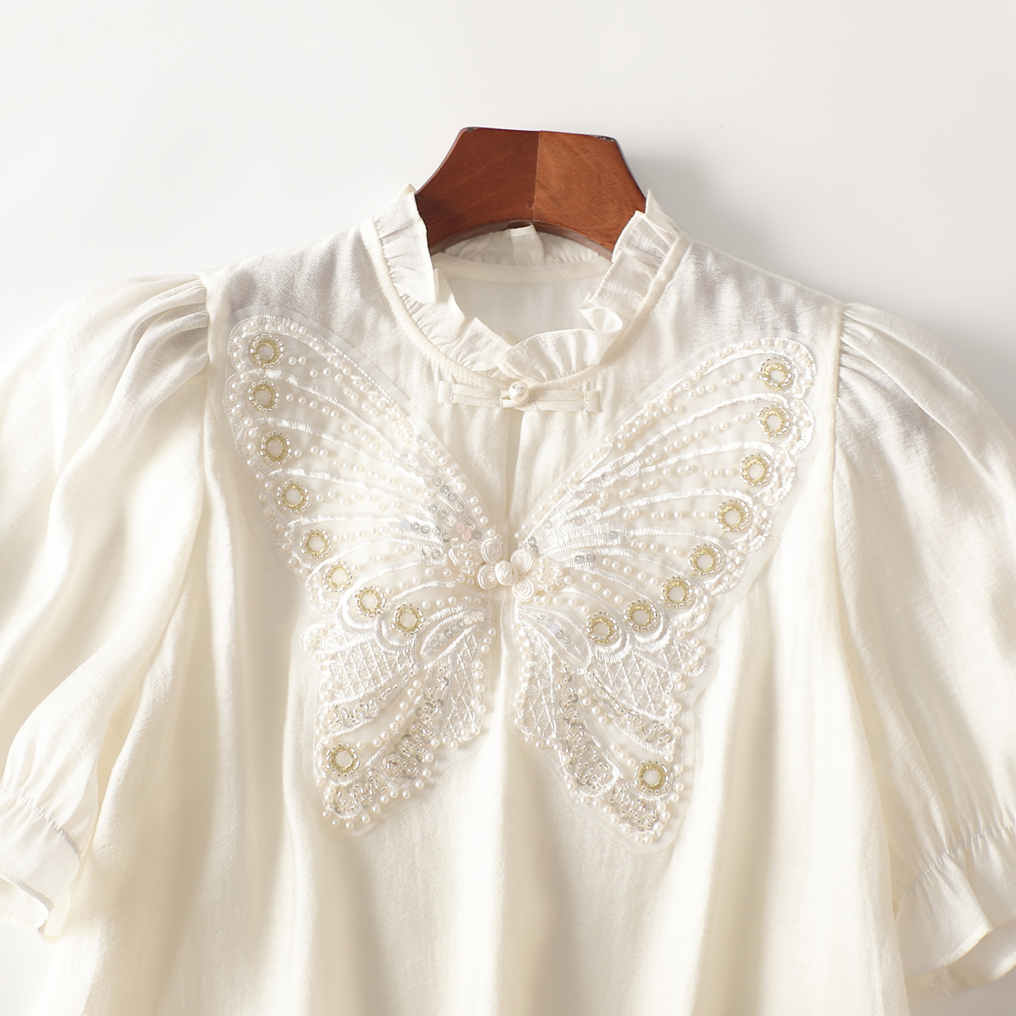 411563 夏天丝上衣 女中长款短袖圆领现货