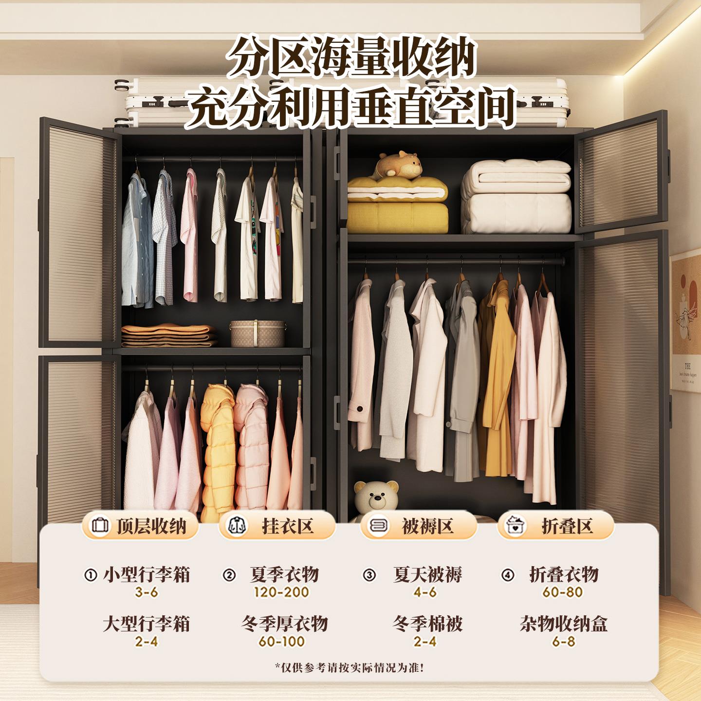 钢制衣柜简易组装家用卧室出租房金属铁皮衣柜组合挂衣橱2025新款