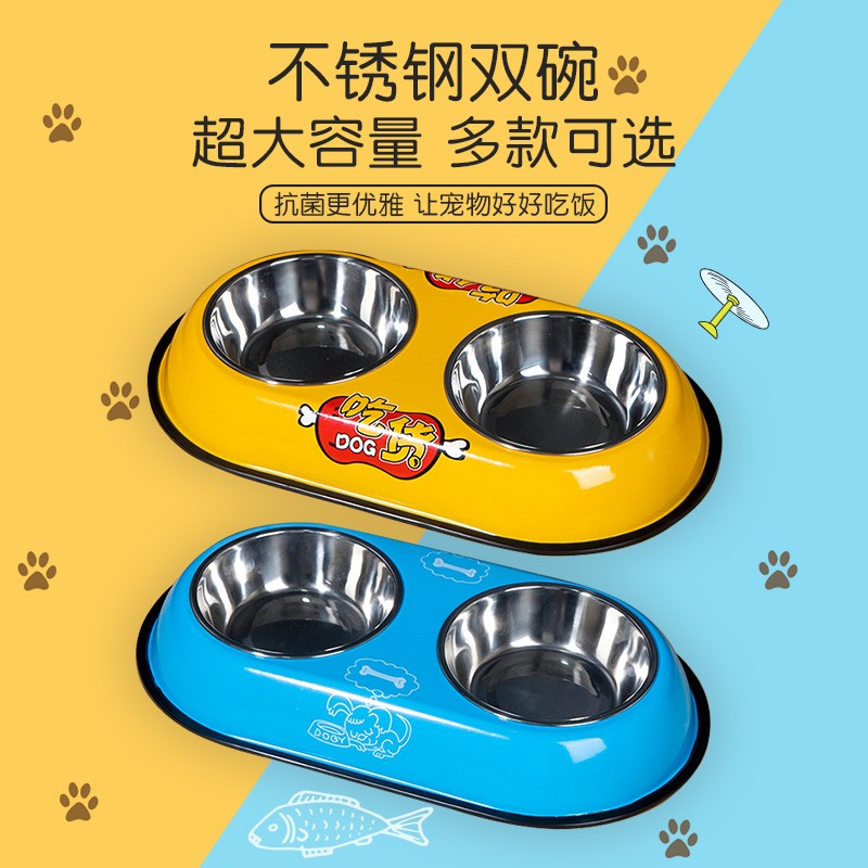 速发不锈钢双碗狗碗猫碗防滑喂食猫咪泰迪金毛防打翻饮水用品