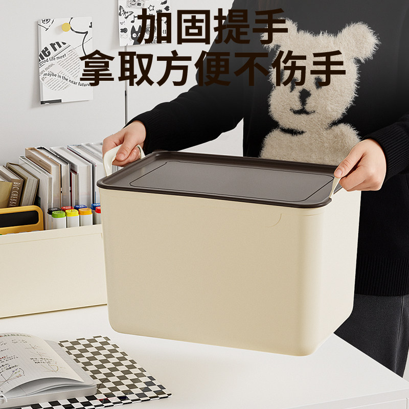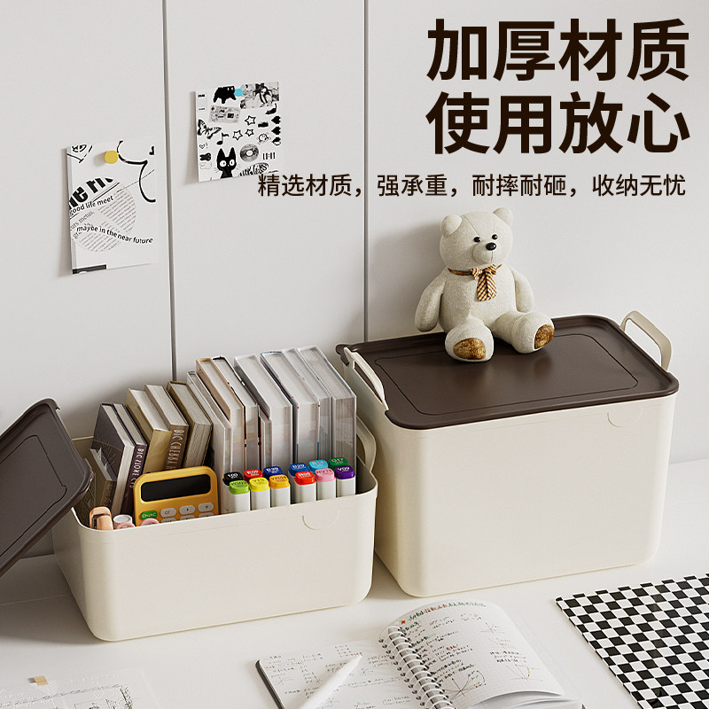 日本收纳盒带盖桌面零食储物盒长方形化妆品整理箱塑料小置物筐子