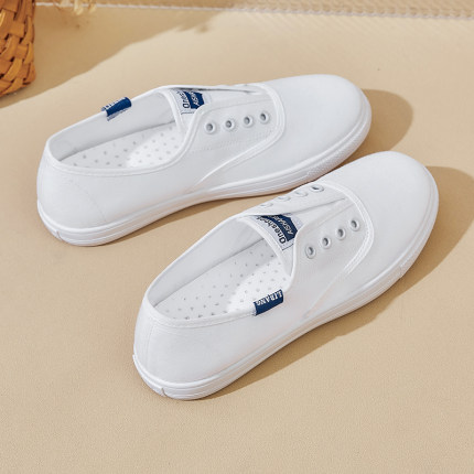 老北京布鞋女2026夏季新款薄款浅口懒人一脚蹬透气小白帆布单鞋子