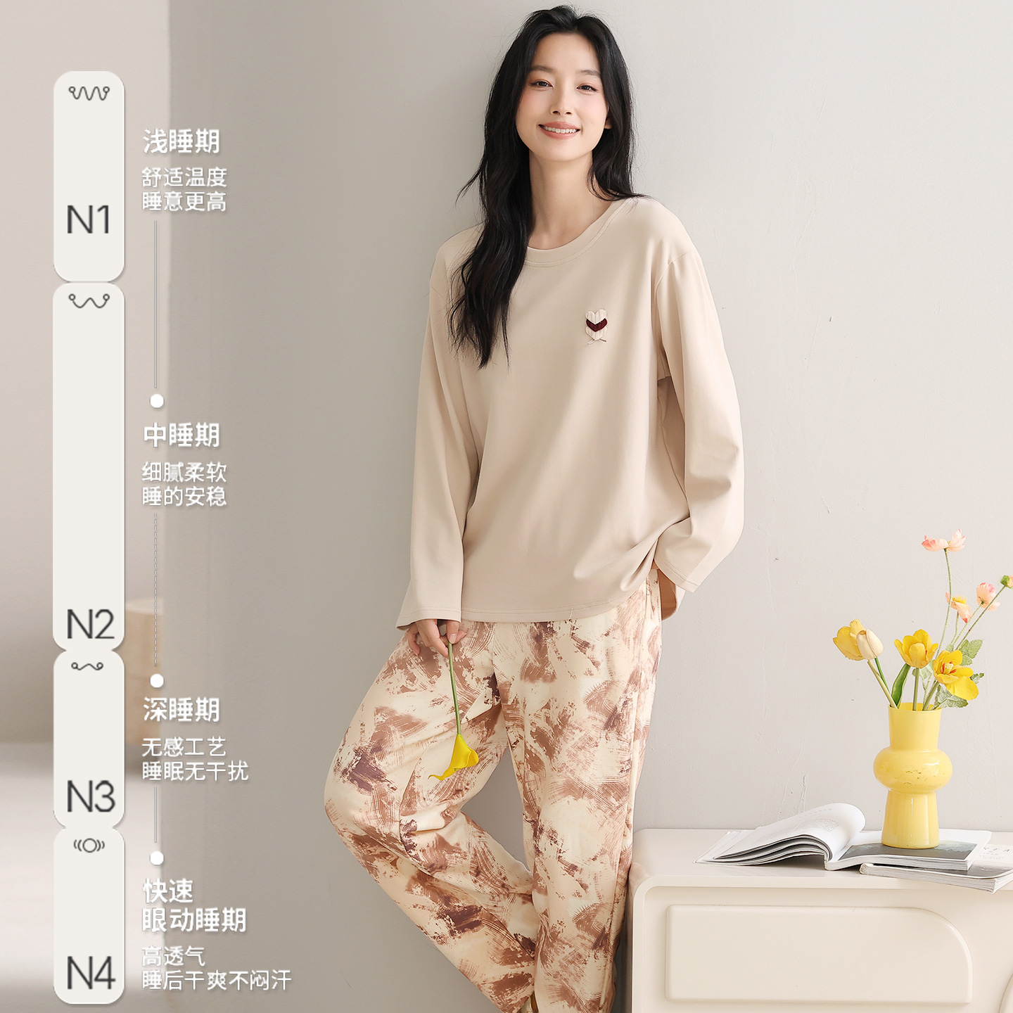 芬腾可安长袖睡衣秋女款2025新款秋春季纯棉女士冬天俏皮家居服冬