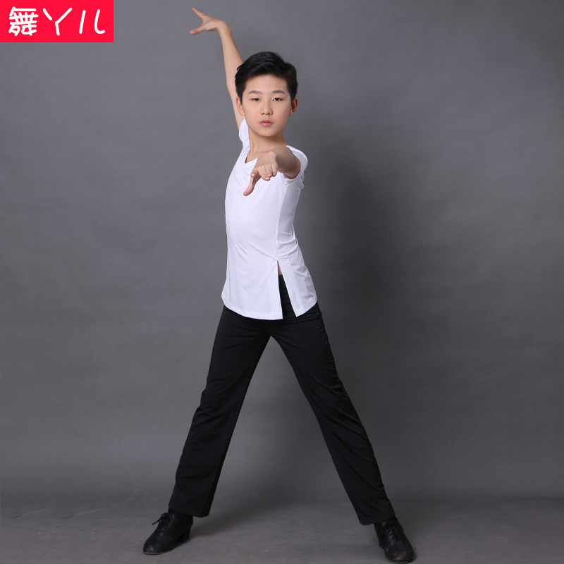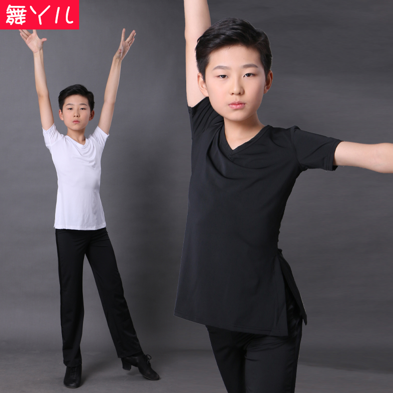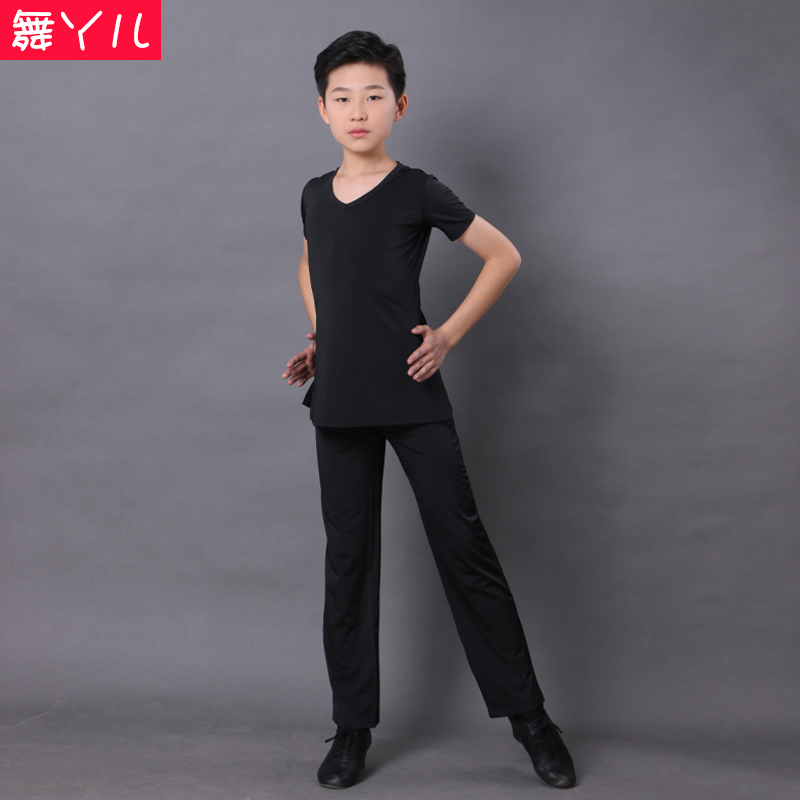 儿童拉丁舞蹈套装夏季短袖练功服男童形体服幼儿舞蹈服装考级演出