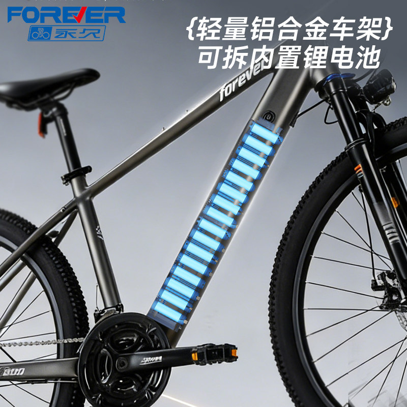 永久可拆锂电助力山地车男女学生双碟刹铝合金车架变速减震自行车