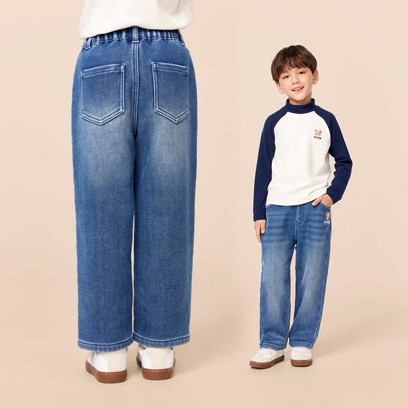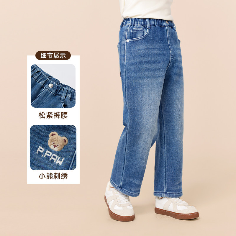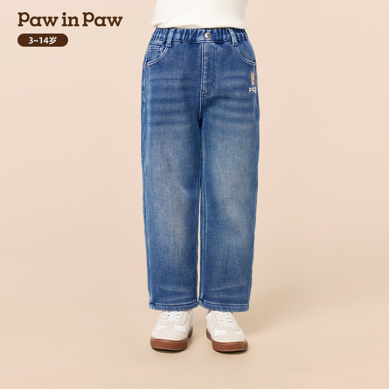 【商场同款】PawinPaw卡通小熊童装25冬季新款男童加绒牛仔裤宽松