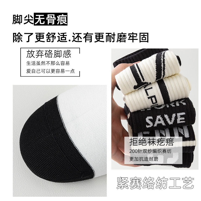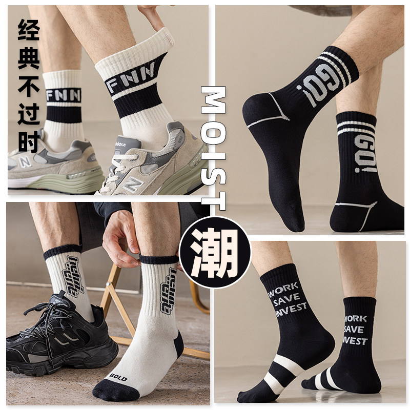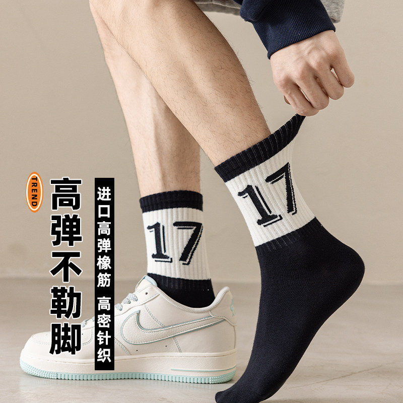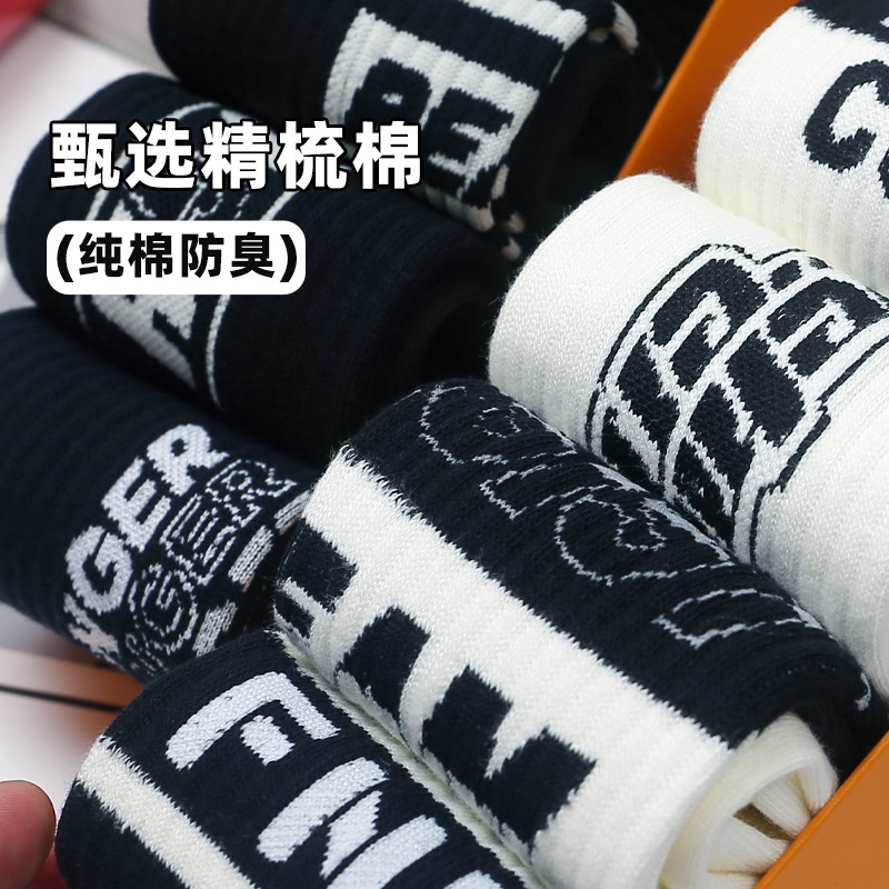 黑白秋冬潮男袜子中长筒纯棉防臭运动篮球无骨抗菌青少年男袜全棉