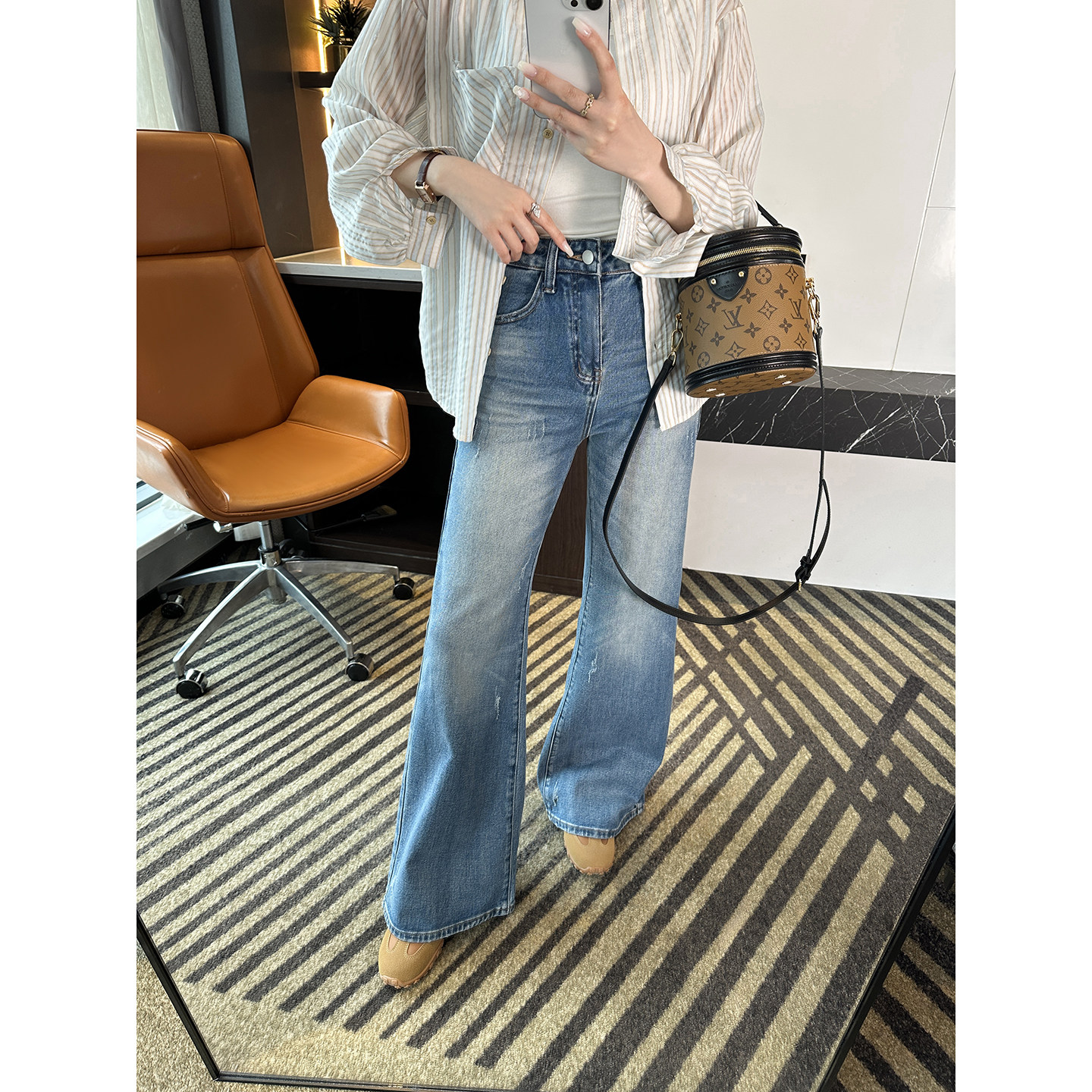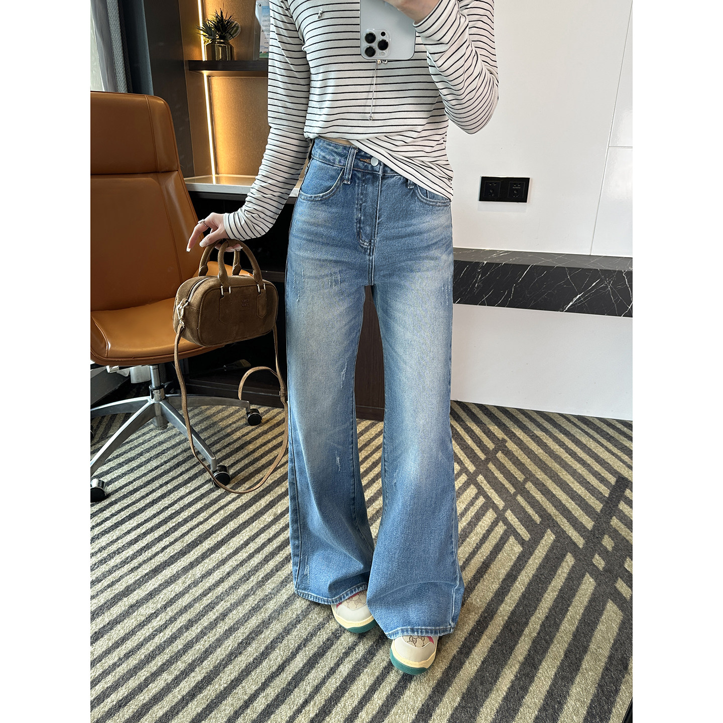 气场炸裂!~高腰弹力筒喇裤子春季显瘦百搭微喇牛仔裤女2026新款