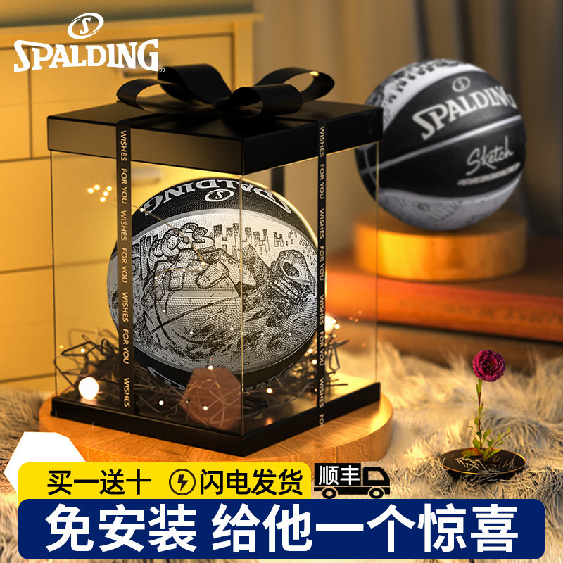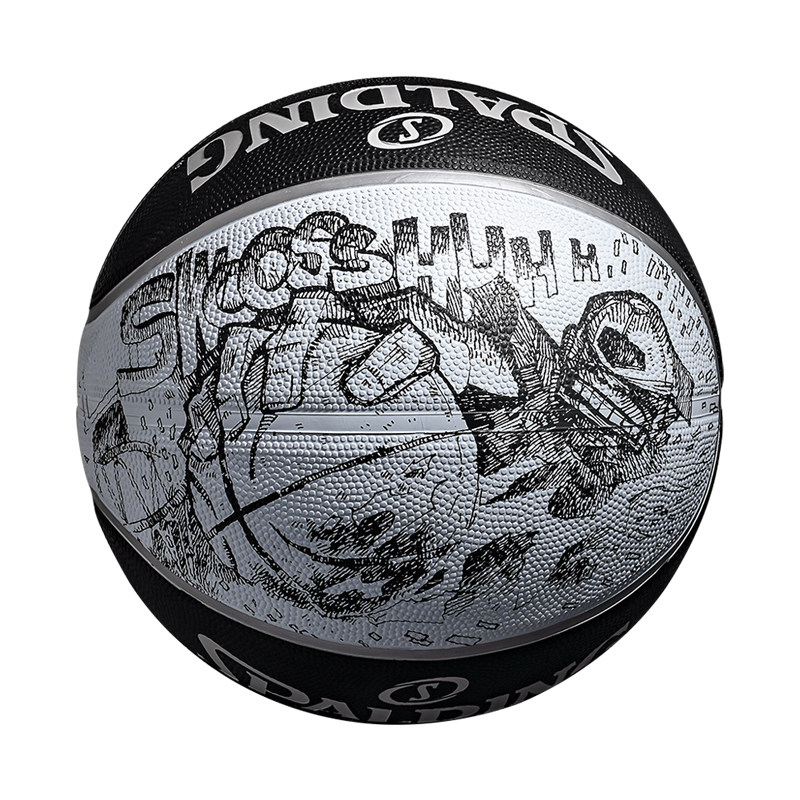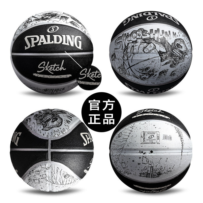 斯伯丁篮球官方正品7号黑白色素描成人室外比赛训练专用耐磨橡胶