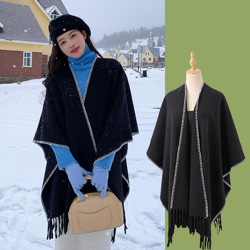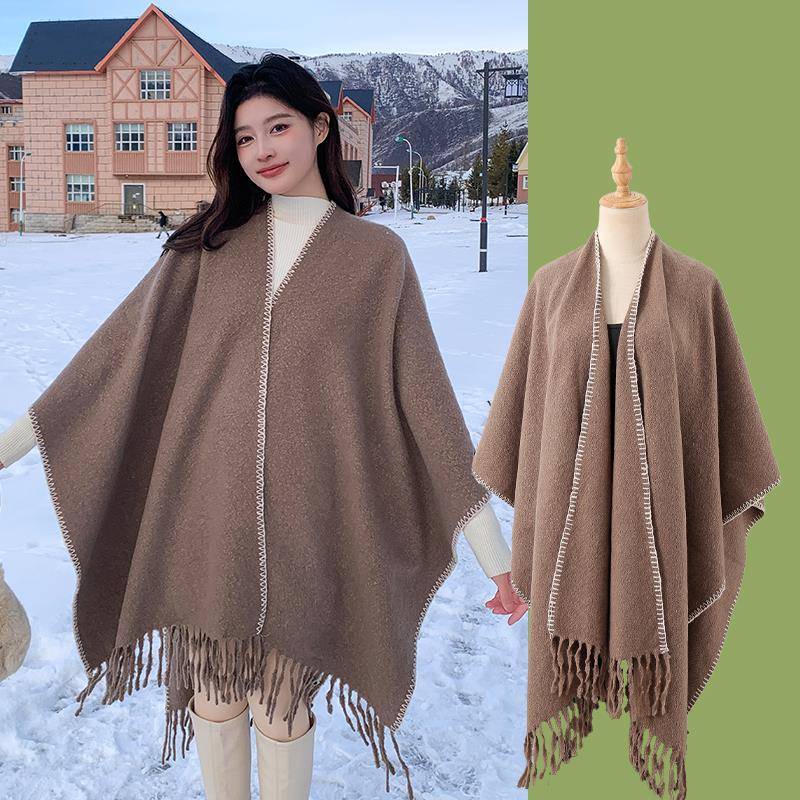 秋冬洋气百搭女士围巾披肩新款色斗篷女外搭季保暖时尚加厚1010c