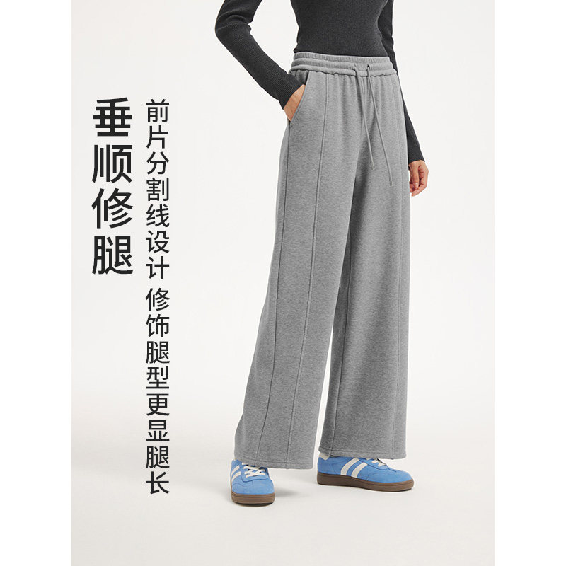 热风女士加绒直筒卫裤2025年冬季新款绒感直筒卫裤宽松休闲长裤