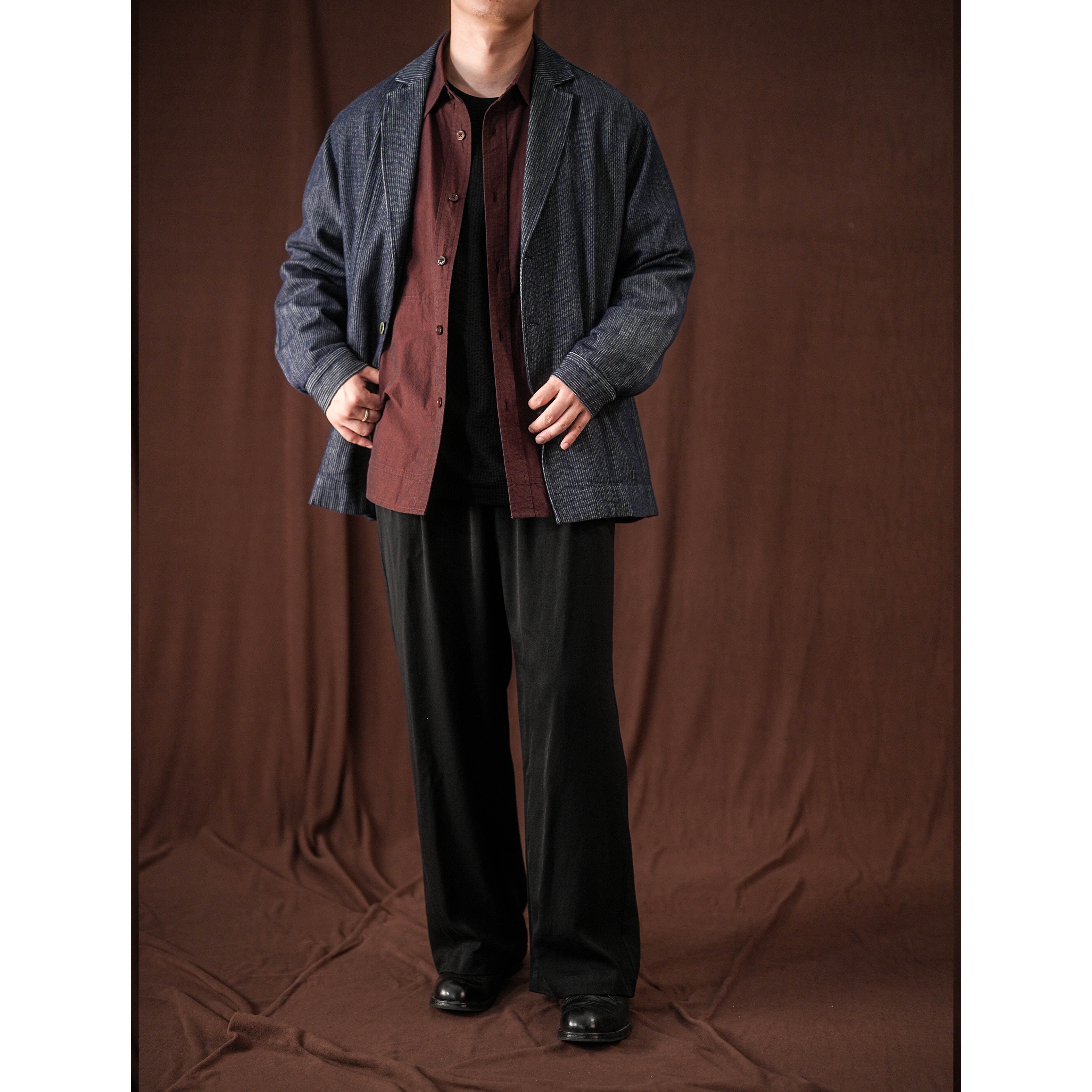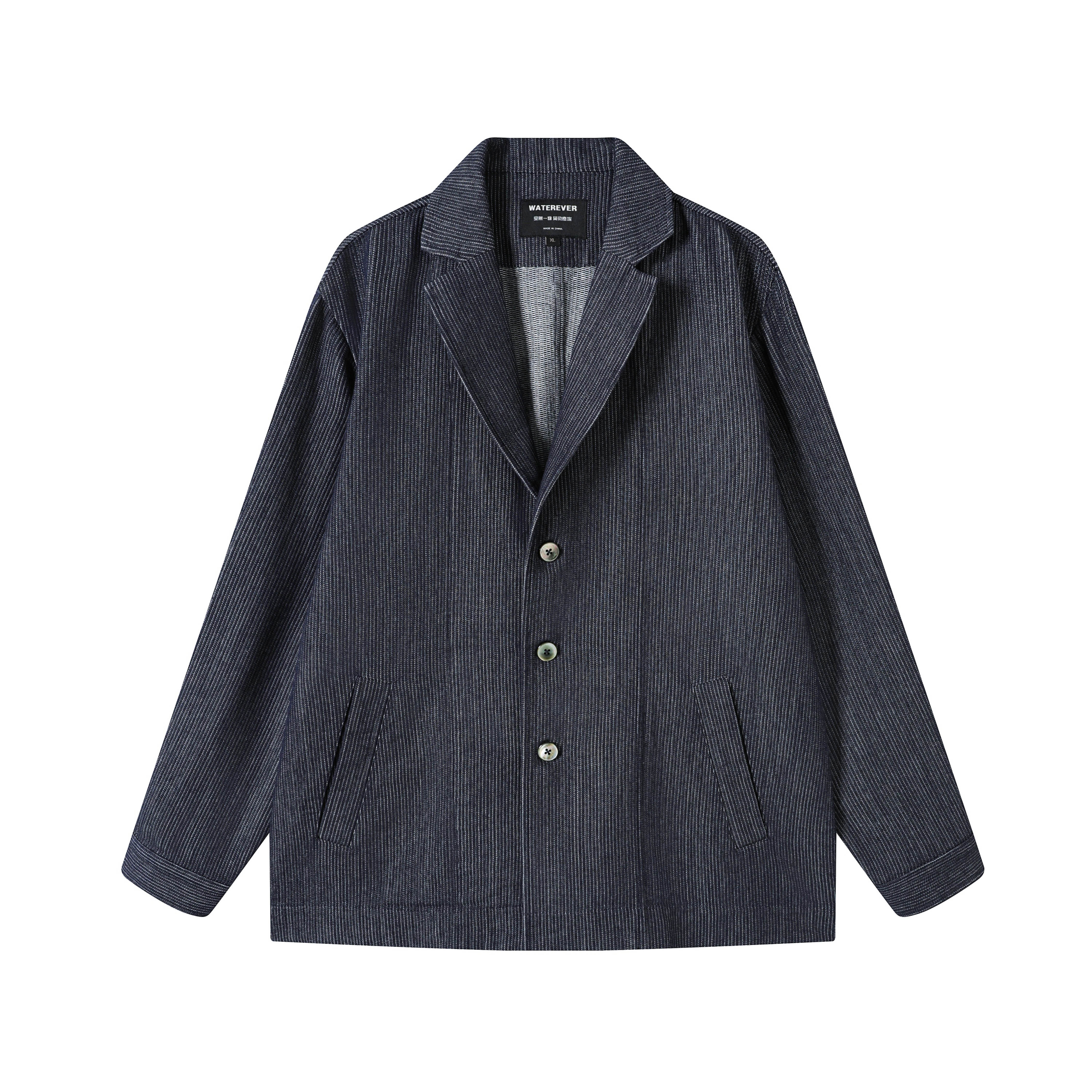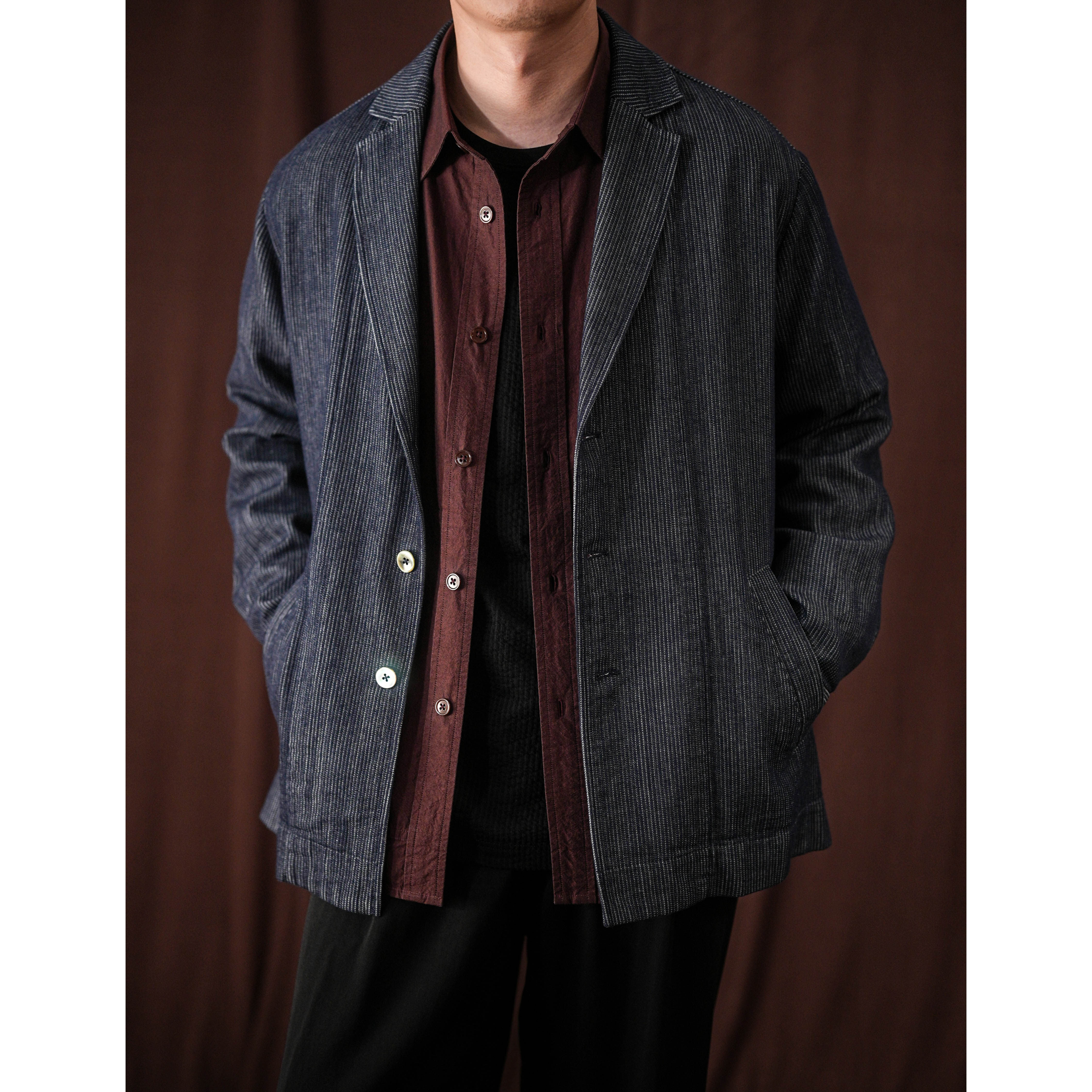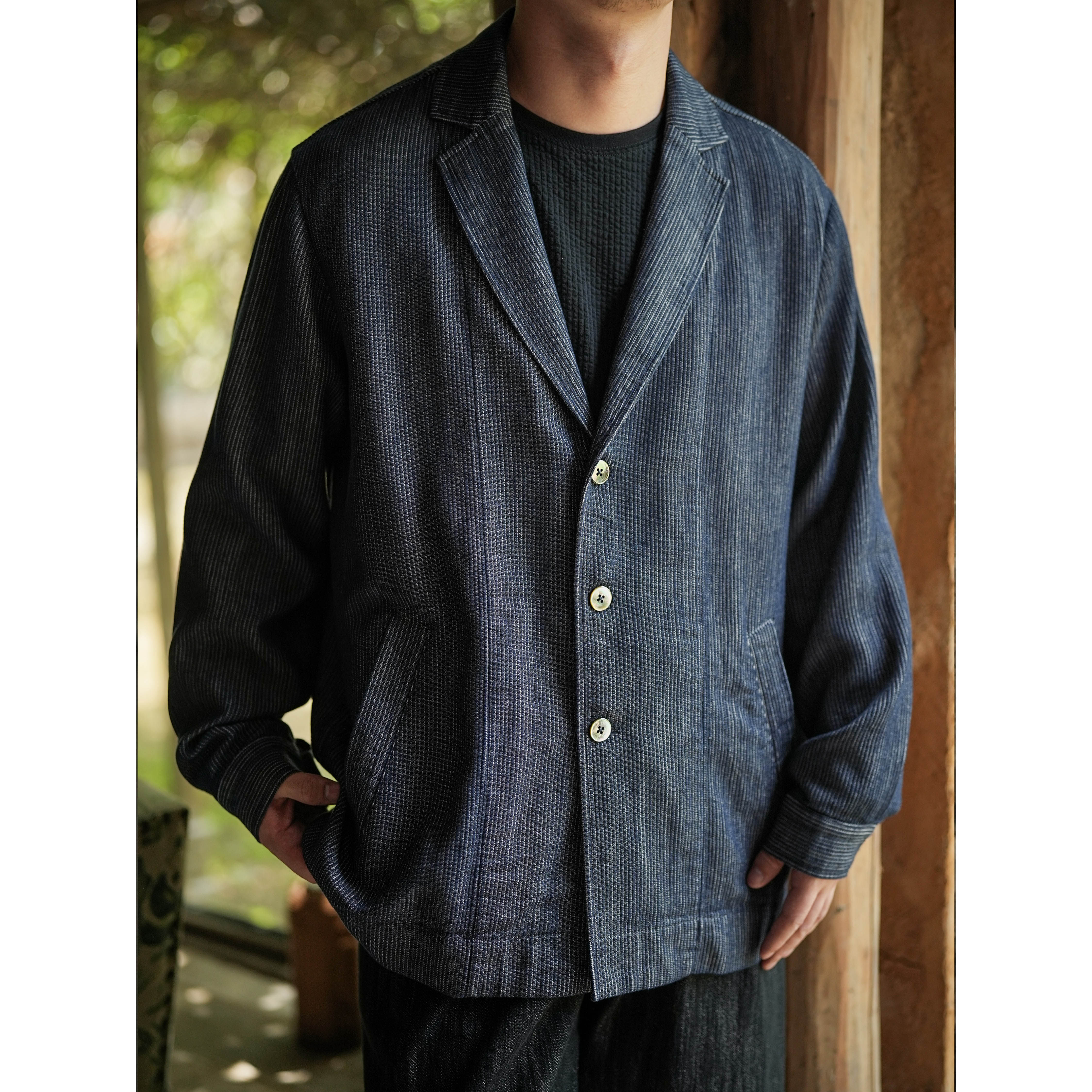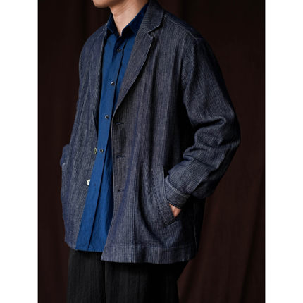 WATEREVER「山河」蓝色色织暗条纹牛仔西装夹克高级感不褪色