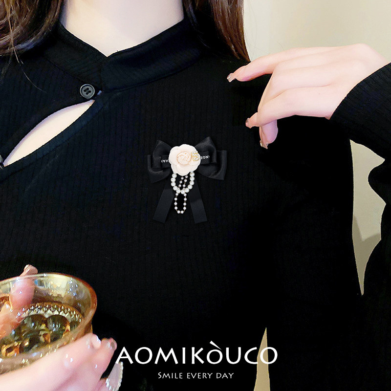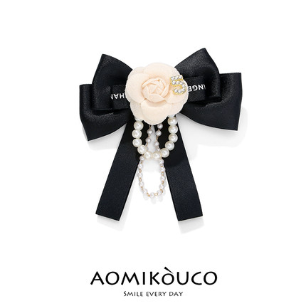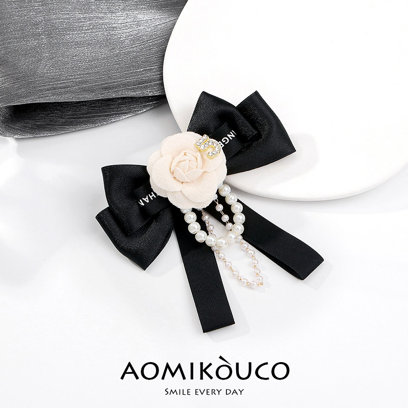 小香风高级布艺山茶花蝴蝶结胸针