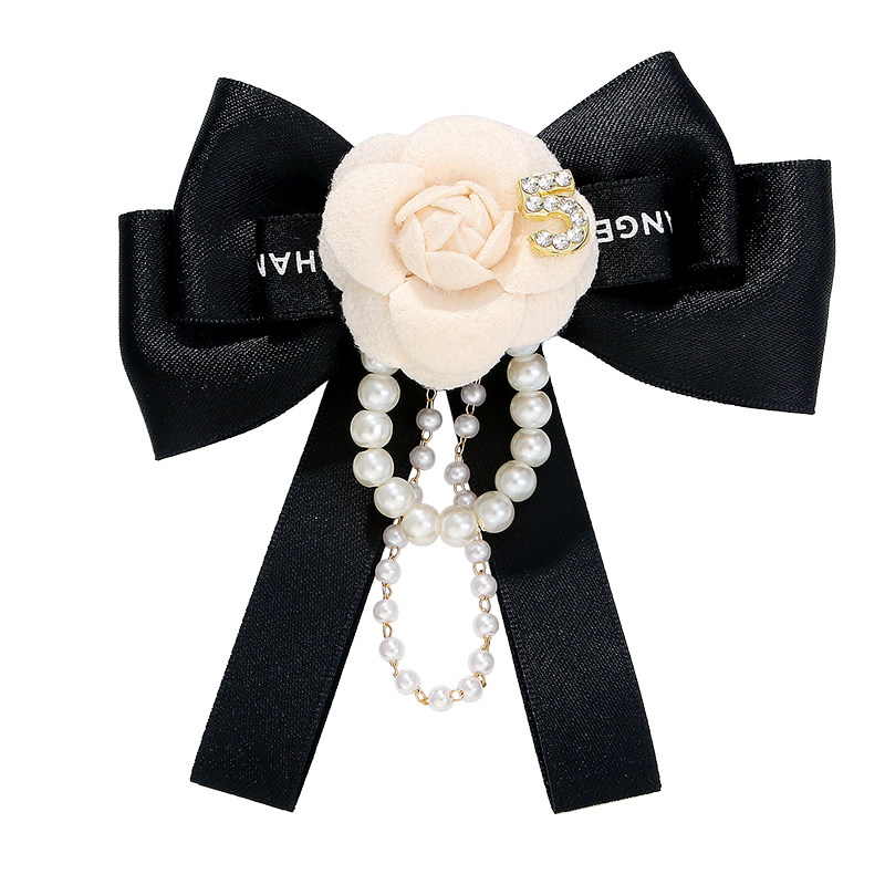 小香风高级感布艺山茶花蝴蝶结胸针珍珠数字5别针连衣裙百搭配饰