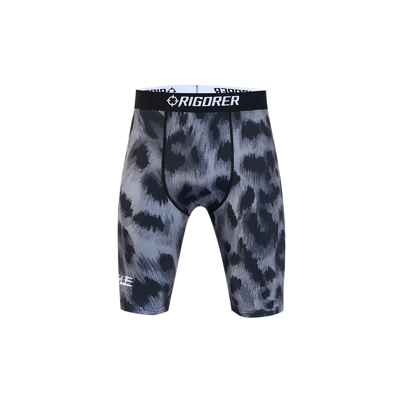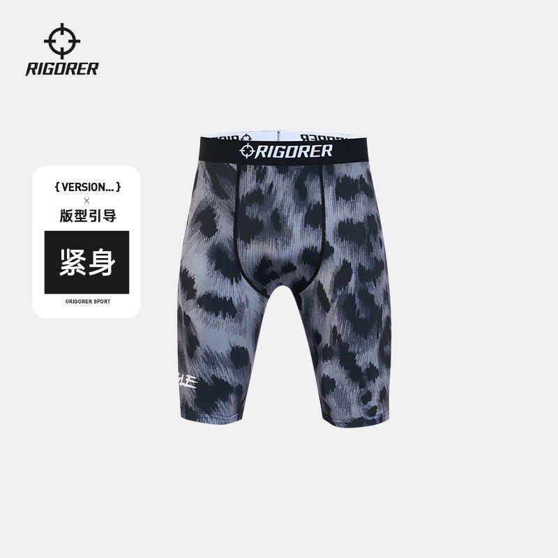 准者豹纹五分紧身裤2024夏季新款健身美式篮球打底裤男跑步压缩裤