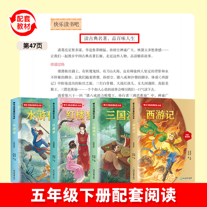 四大名著原著正版小学生版五年级下册必读的课外书老师推荐快乐读书吧五5下全套西游记三国演义水浒传红楼梦中国青少年版人教书籍