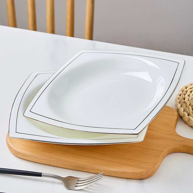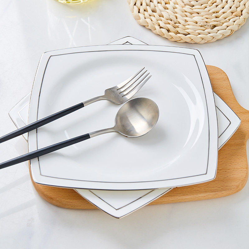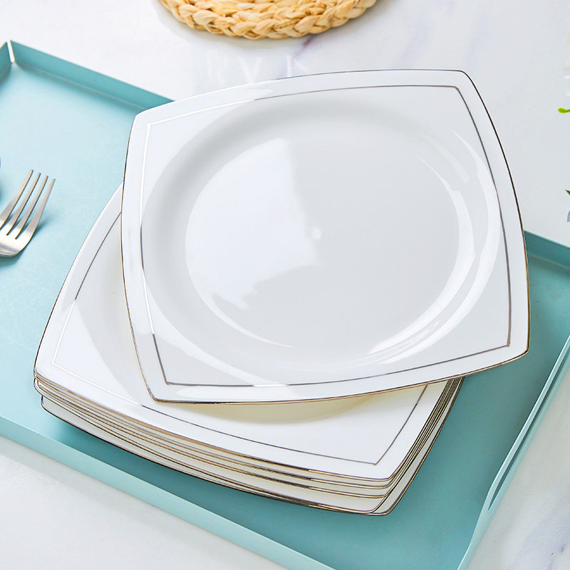 景德镇白金边骨瓷餐盘盘子家用碟子餐具菜碟水果盘ins风方形菜盘