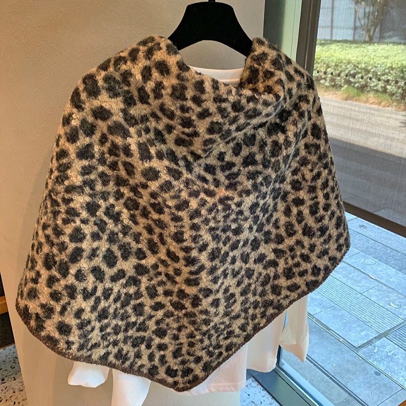 豹纹围巾女秋冬季百搭坎肩网红个性时尚韩版ins小众外搭围巾披肩