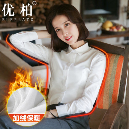 白色衬衣职业保暖冬季加厚衬衣