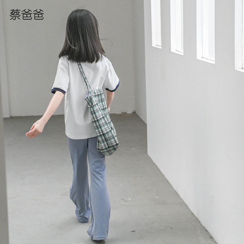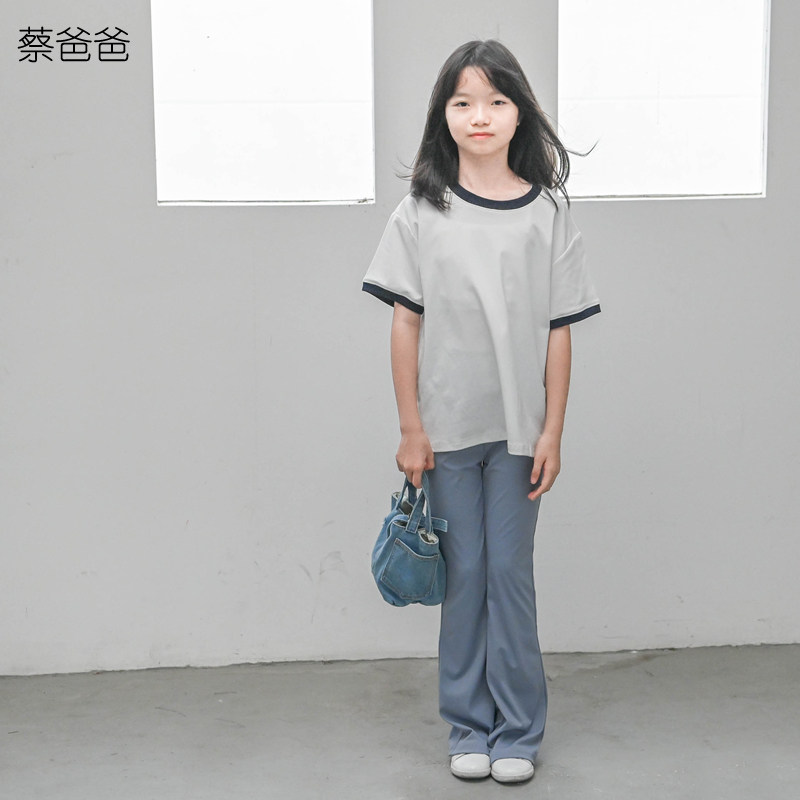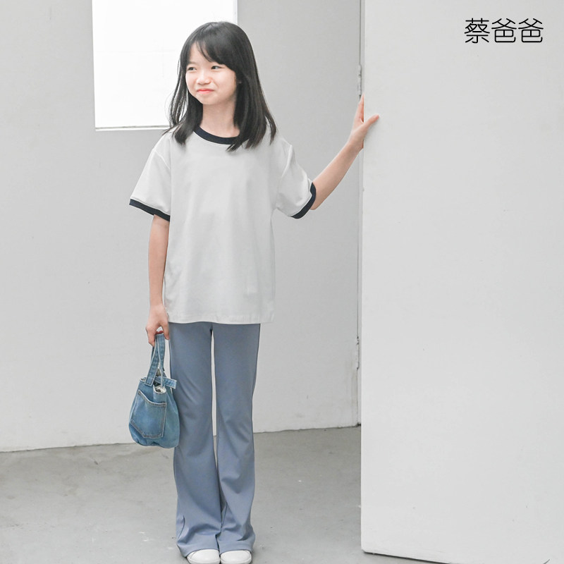 蔡爸爸童装气质新款撞色上衣女大童夏季白色休闲t恤亲子装072+933