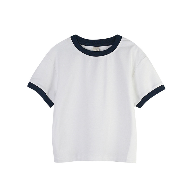 女大童夏季白色撞色上衣休闲t恤