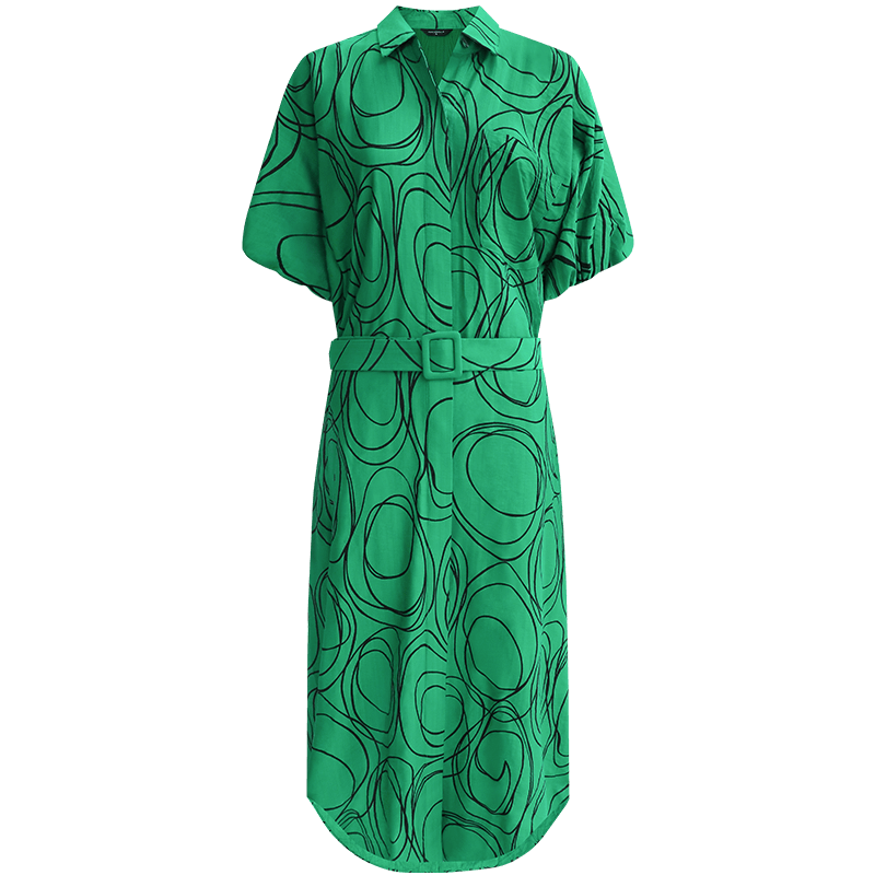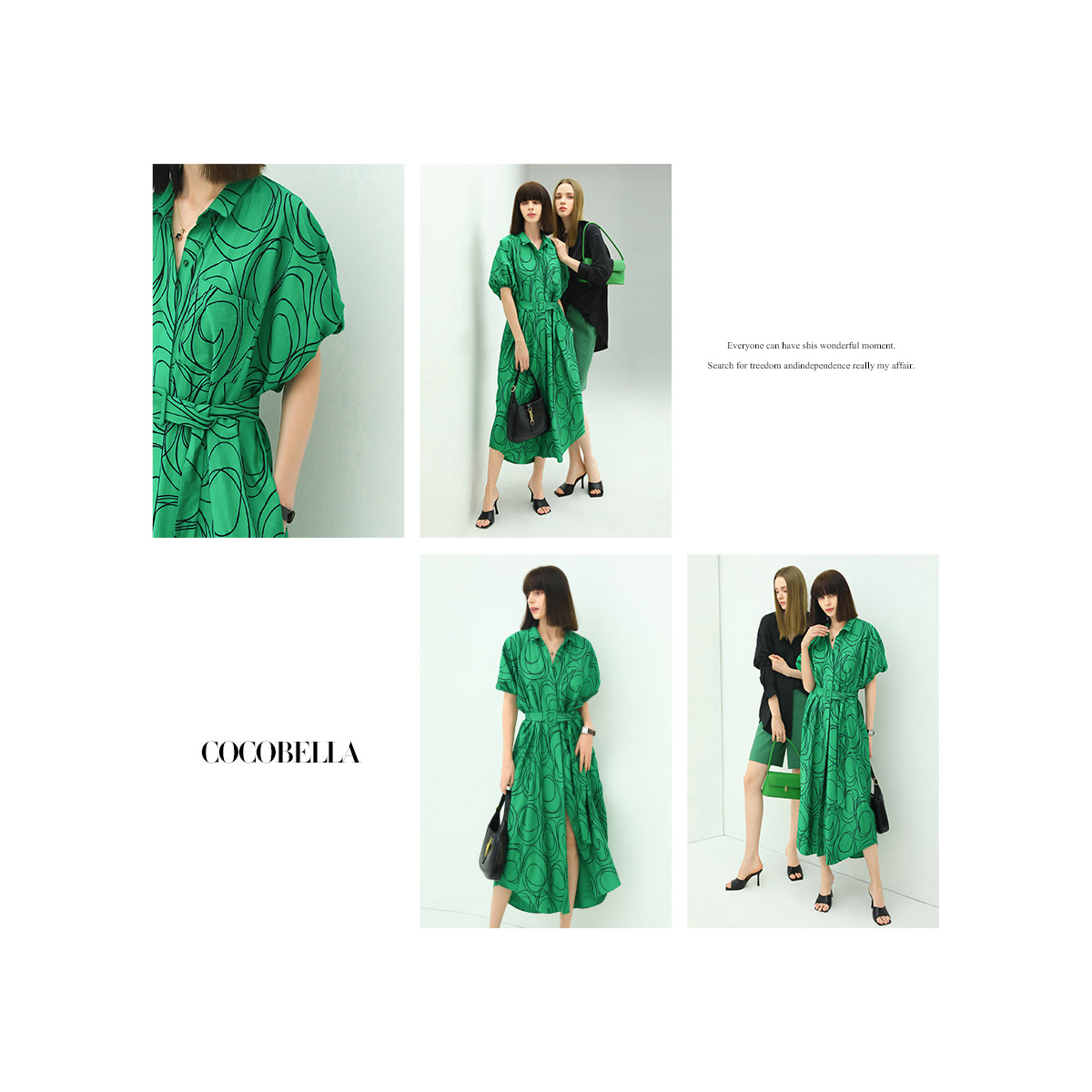 COCOBELLA气质OL绿色衬衫裙女海边度假大码遮肉连衣裙FR901B
