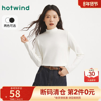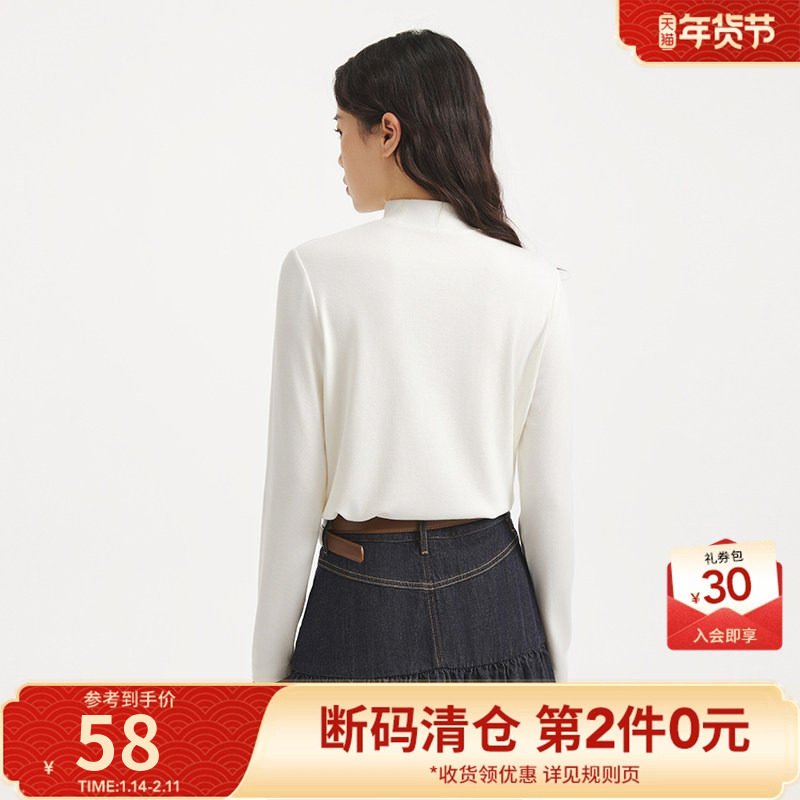 热风2025年秋季新款女士半高领打底长T恤简约打底衫基础百搭内衬