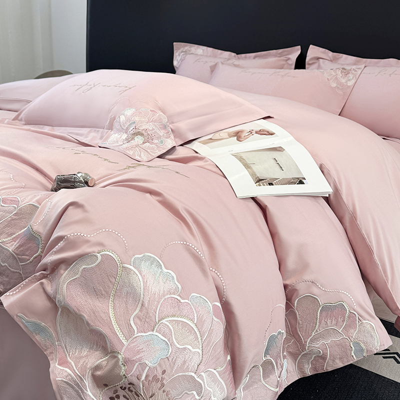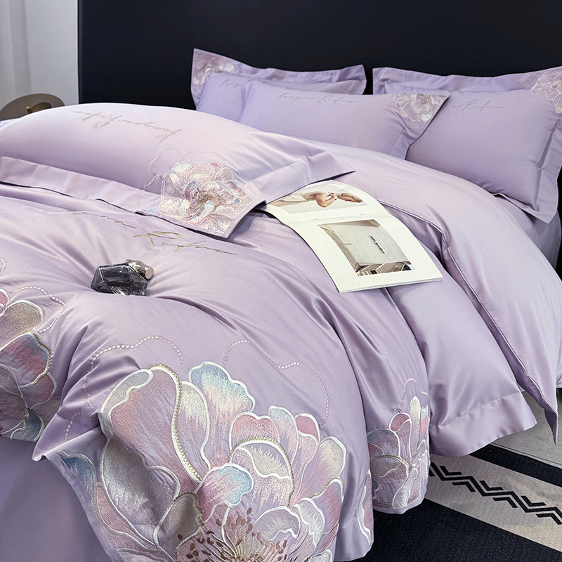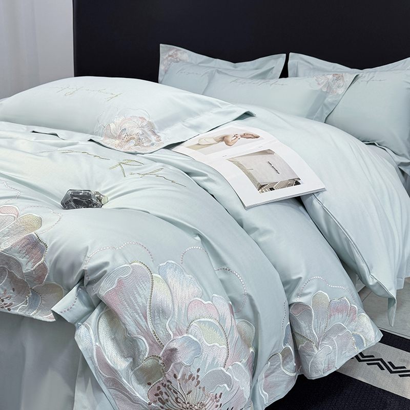 高级感A类长绒棉纯棉四件套全棉花卉刺绣床笠款被套床单床上用品4