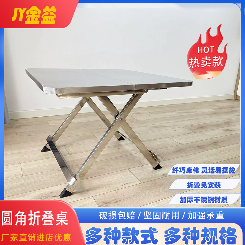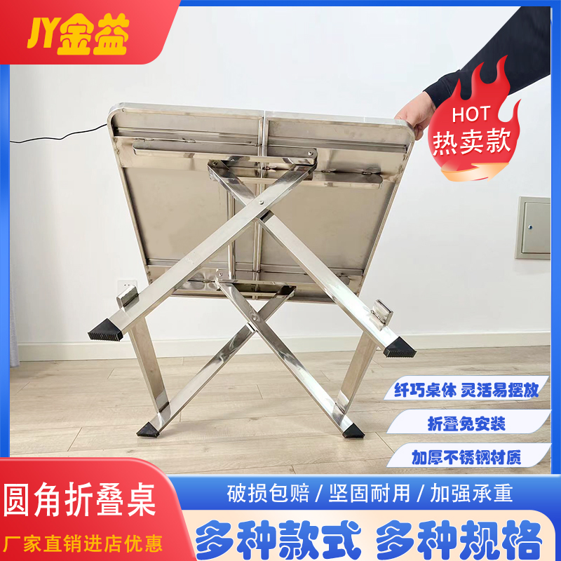 不锈钢可折叠桌餐桌家用户型简约桌子出租屋户外便携摆摊吃饭方桌