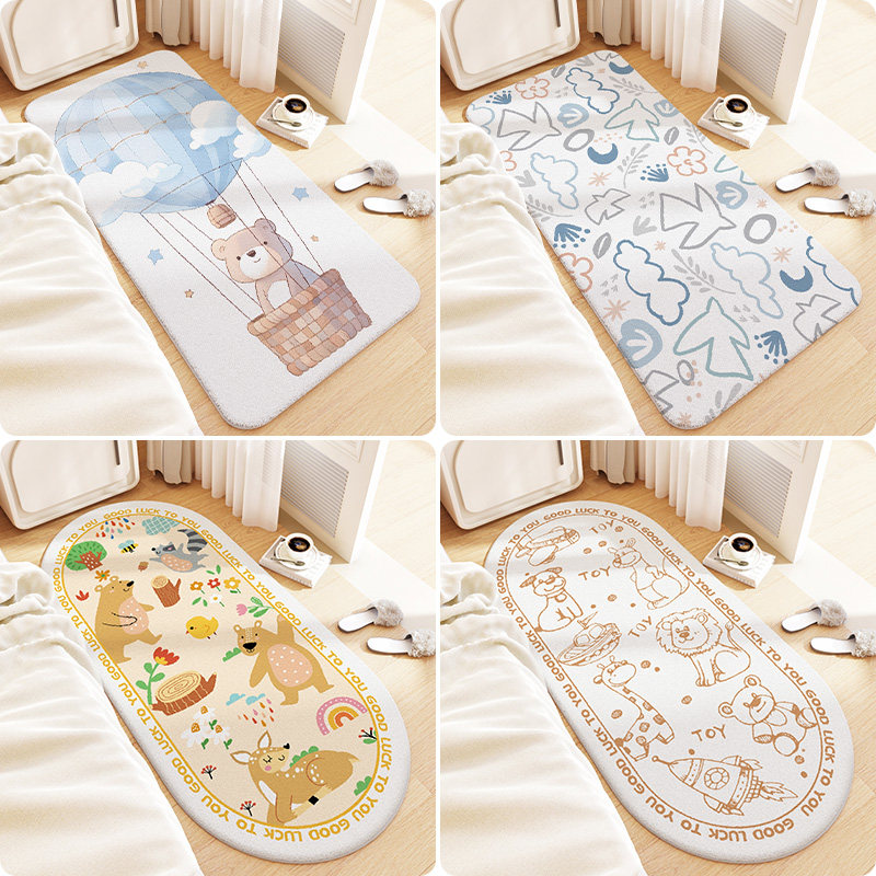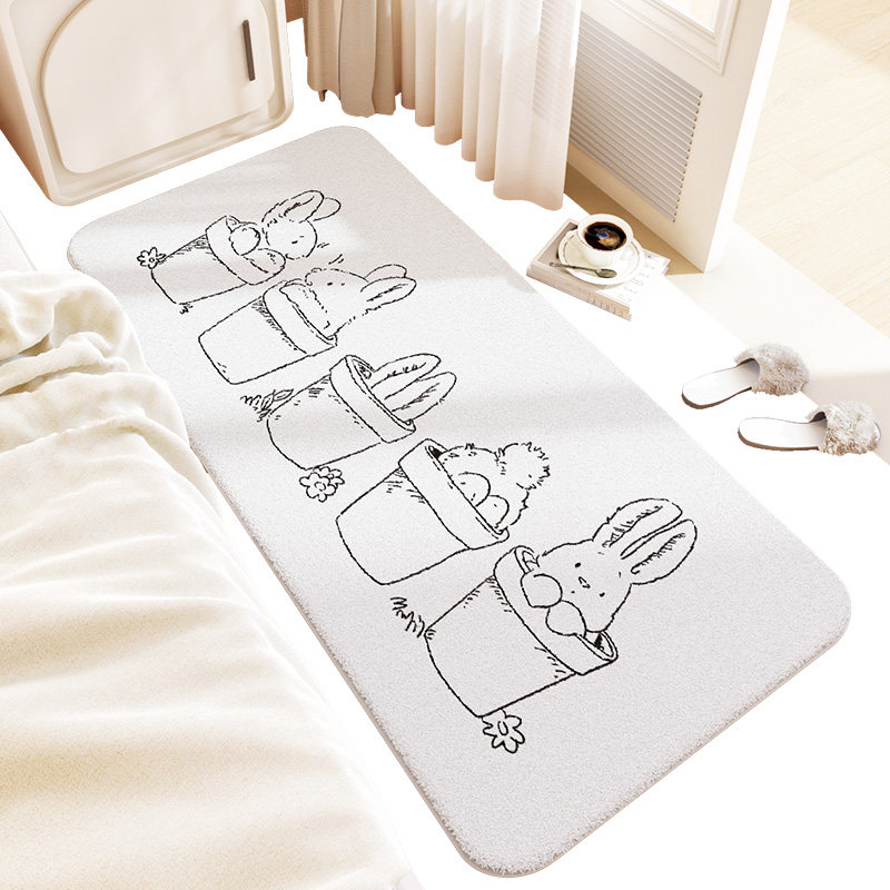 卧室床边地毯长条儿n童房间可爱毛绒毯家用撸猫感床前地垫可坐可