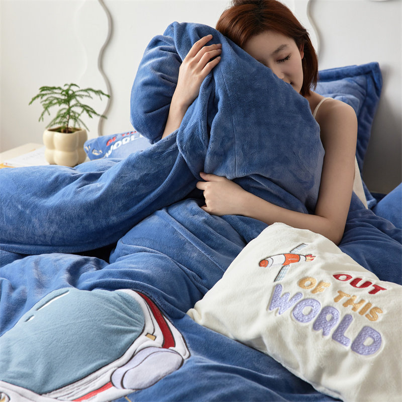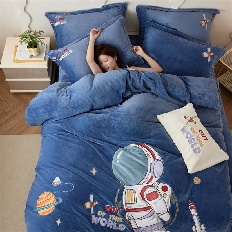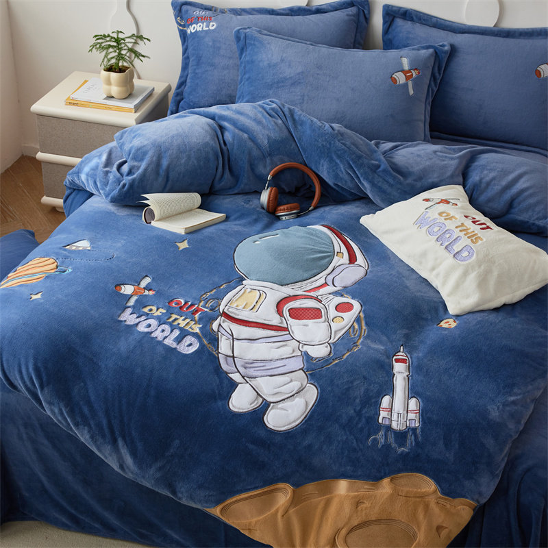 卡通保暖加厚牛奶绒贴布绣四件套