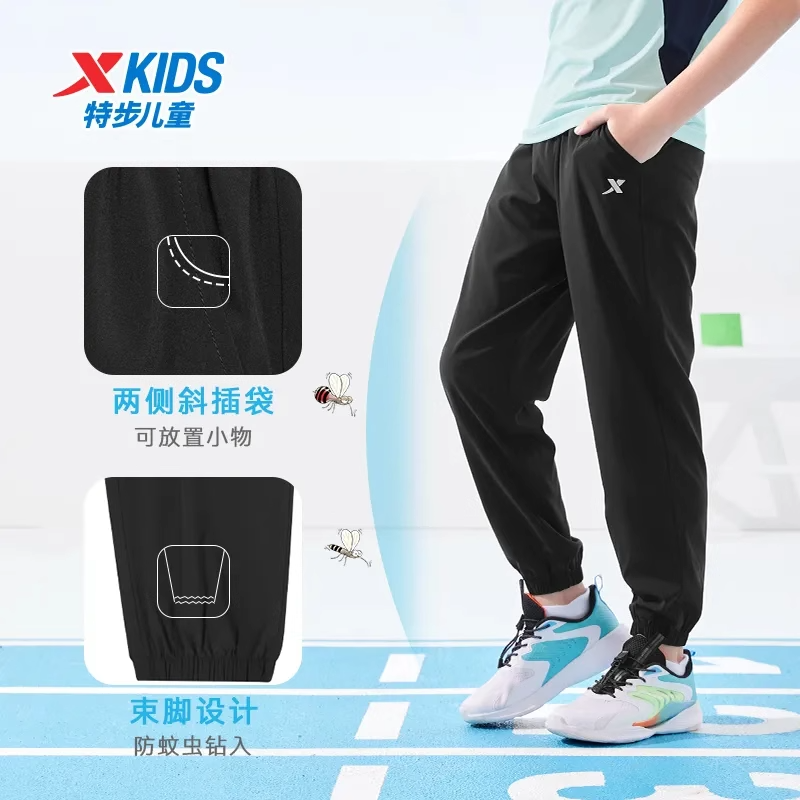 特步儿童速干裤男童装夏季新款透气秋季卫裤防蚊长裤宽松休闲裤子