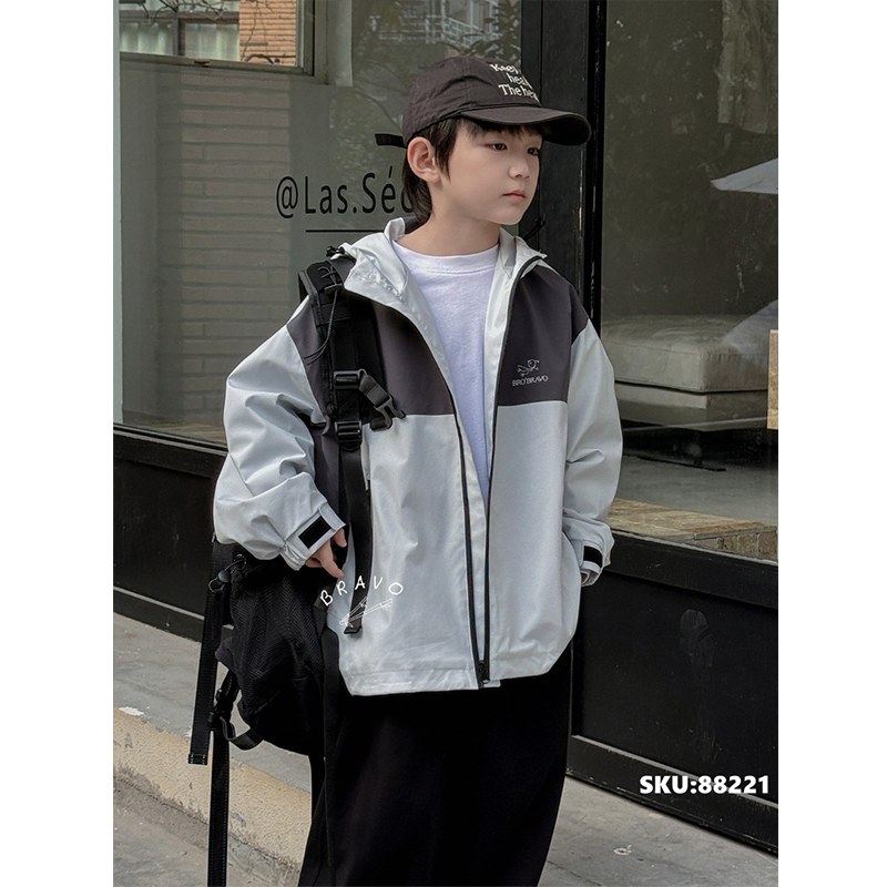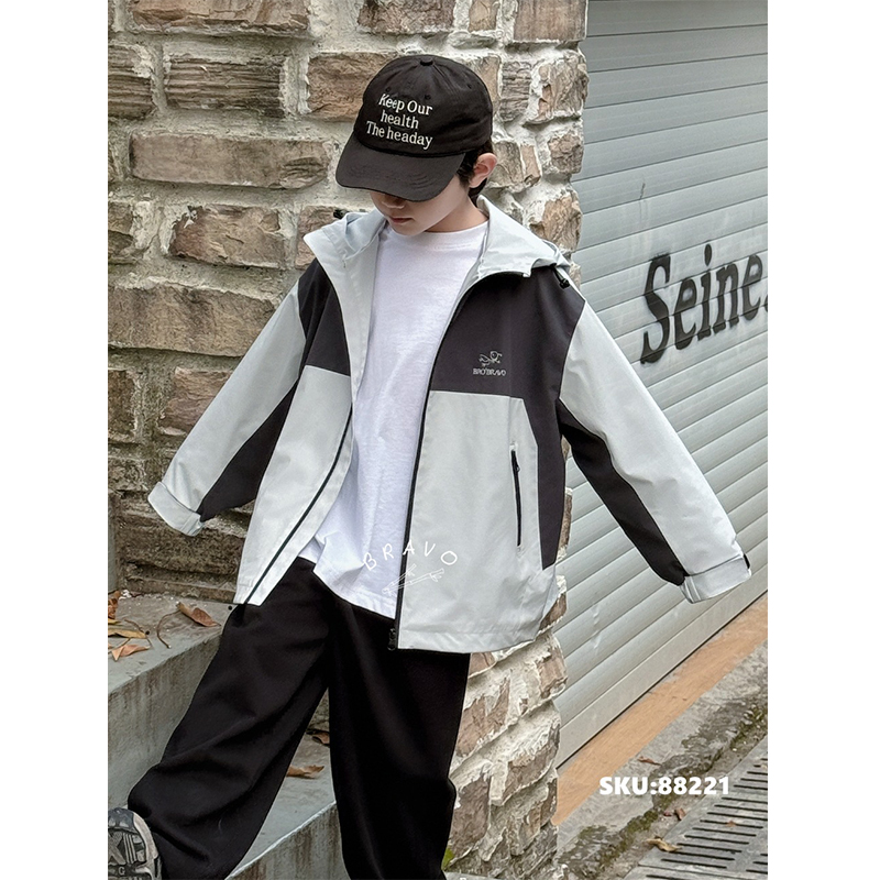 布芮欧童装2025春款儿童韩版拼色夹克衫男女童连帽洋气外套88221
