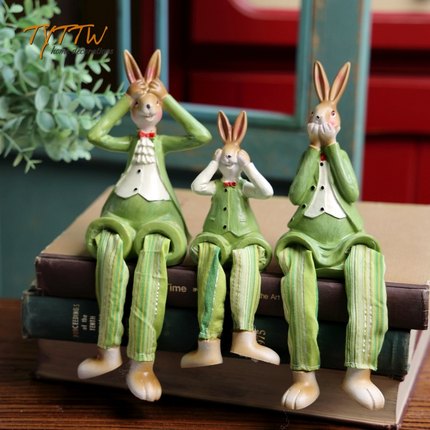 欧美可爱三不兔子吊脚娃娃卡通动物幸福一家三口家居装饰摆件