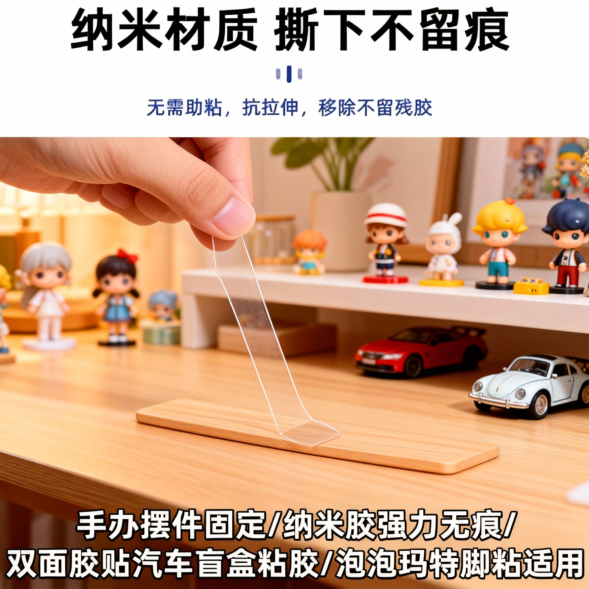 手办摆件固定胶纳米胶强力无痕胶双面胶贴汽车盲盒粘胶泡泡玛特脚