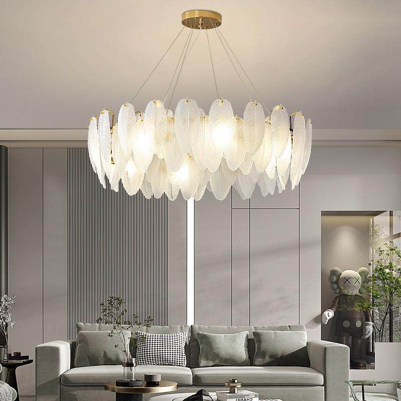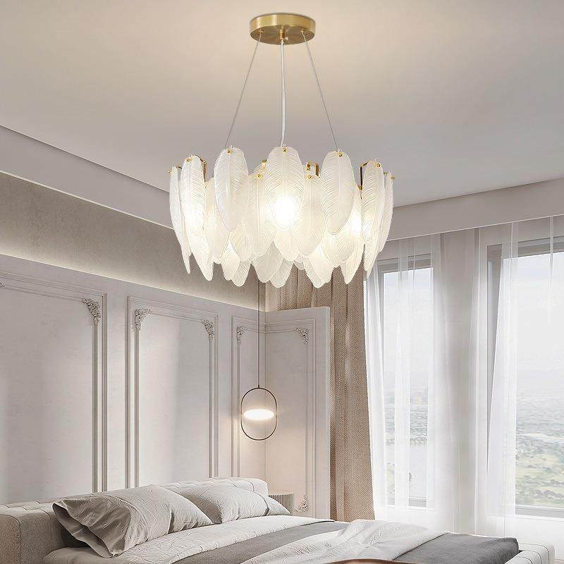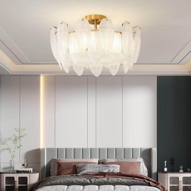 全铜高端法式简约现代水晶灯客厅吸顶吊灯轻奢主餐厅卧室房间羽毛