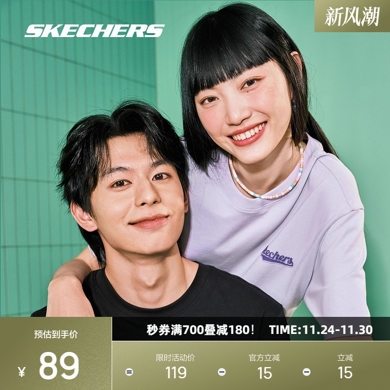斯凯奇短袖男女款情侣宽松体恤圆领运动T恤凉感上衣时尚百搭