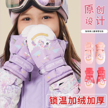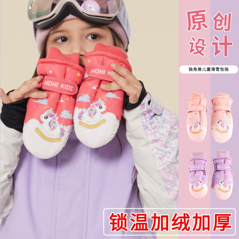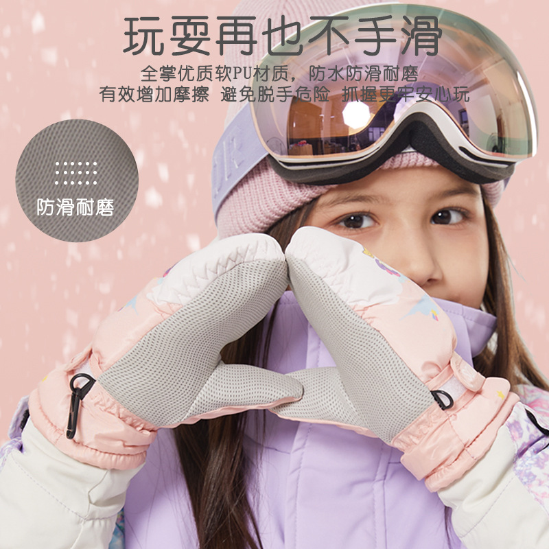 厂家现货独角兽儿童滑雪手套冬季女童男童小孩宝宝保暖加绒加厚棉