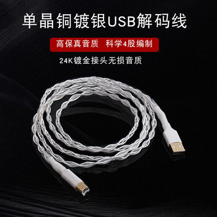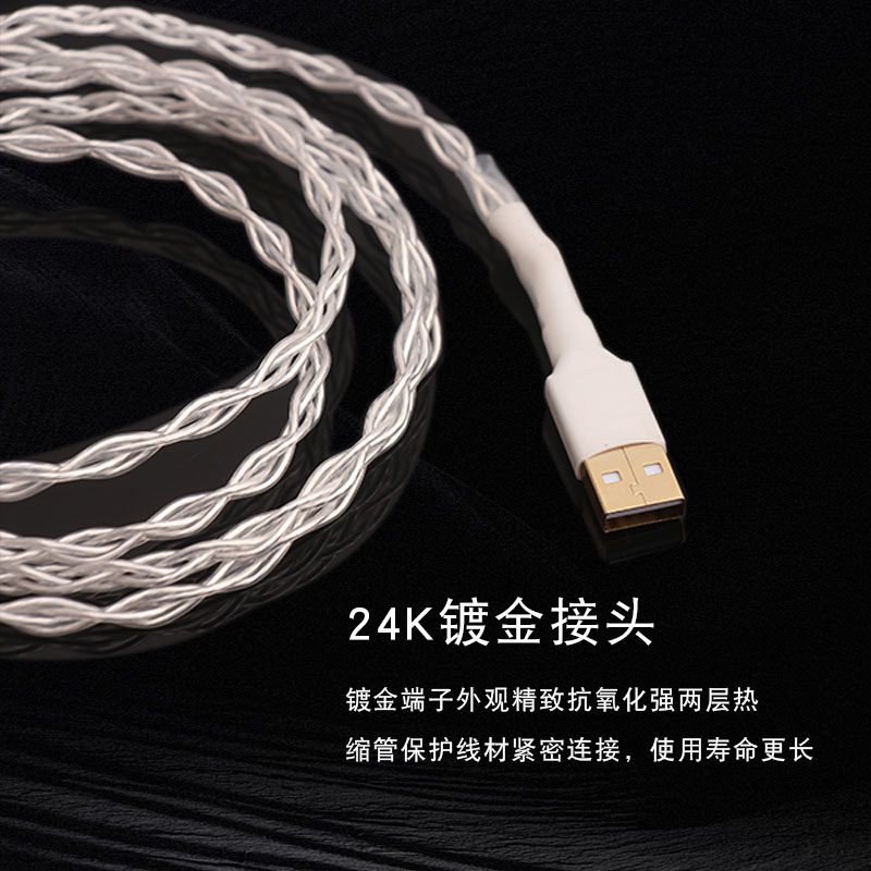AUDIOSOST单晶铜镀银发烧级USB线DAC解码器电脑声卡A-B音频数据线