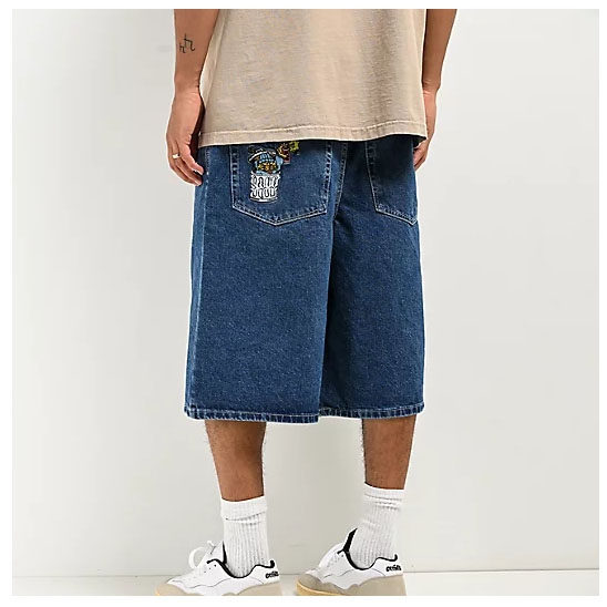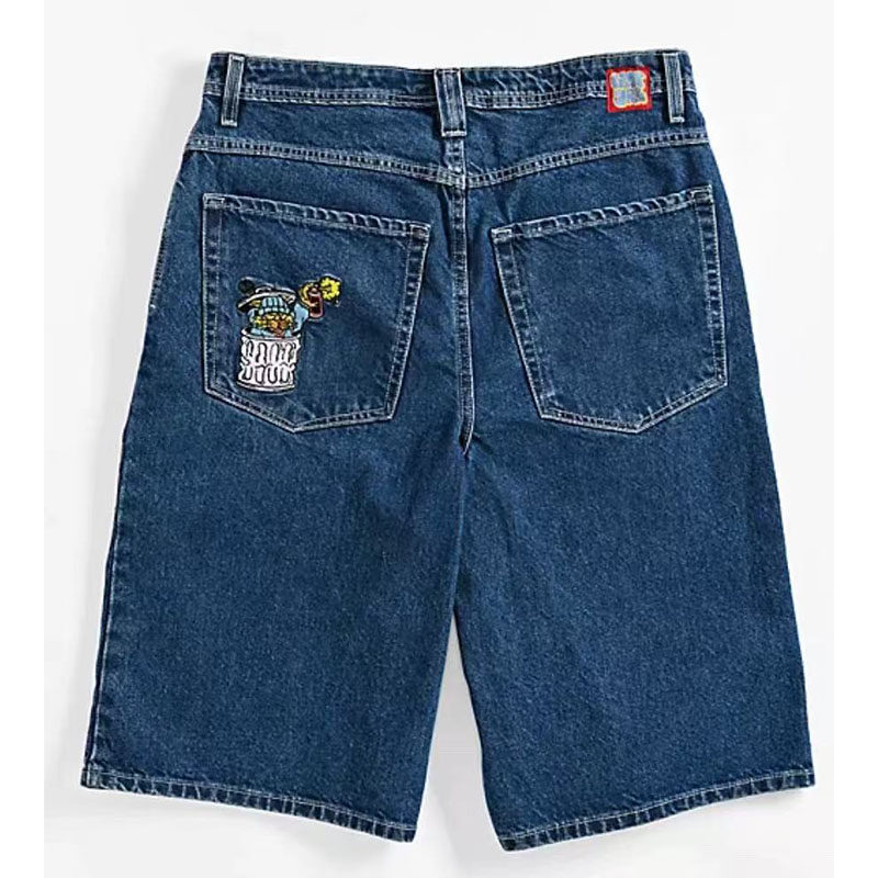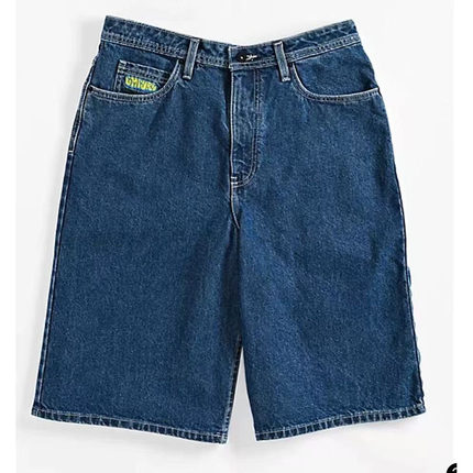 2025新款美式牛仔滑板短裤复古夏季水洗潮牌休闲刺绣牛仔裤直筒裤