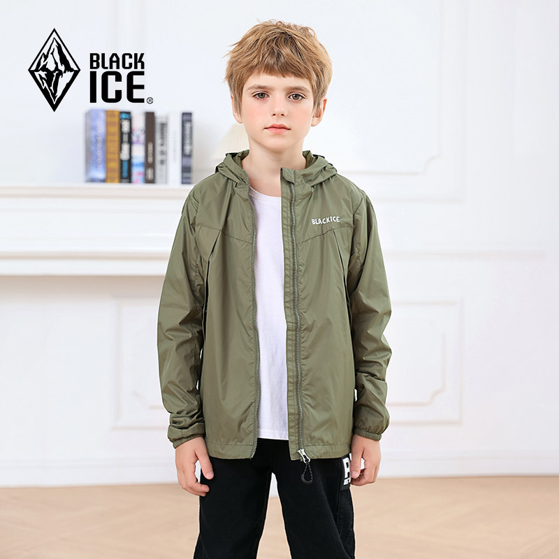 黑冰春季新品户外儿童连帽风衣男女童防风防水休闲运动外套723C