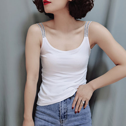 夏季纯棉莫代尔大码字母双肩带百搭吊带背心女外穿遮肚子性感打底