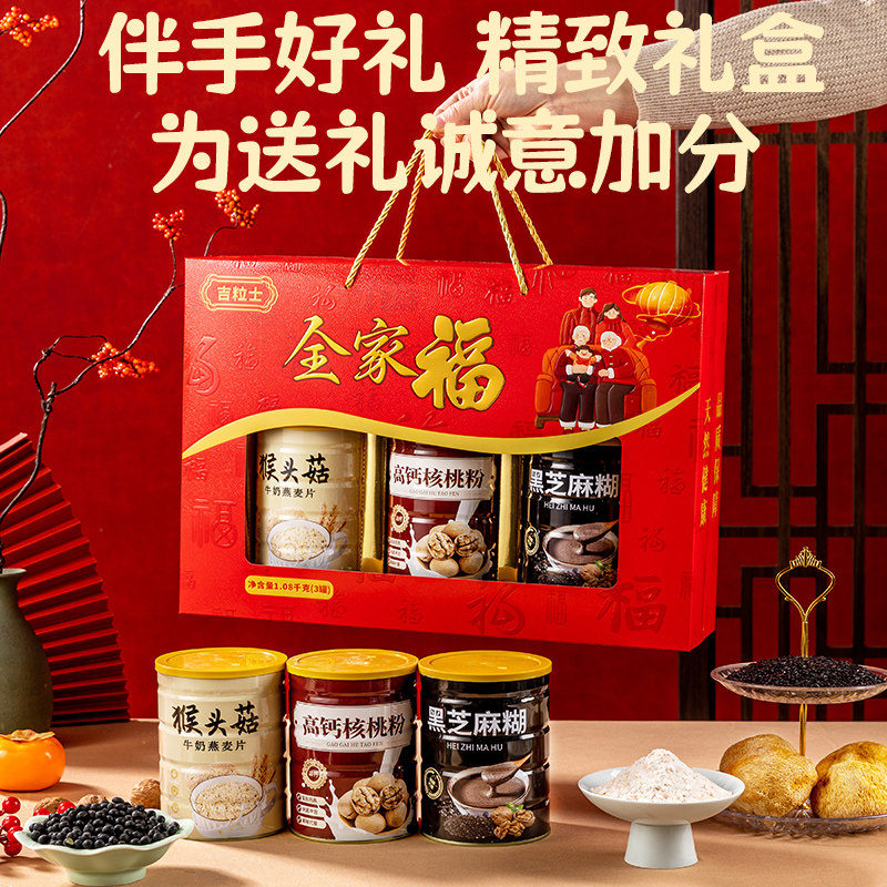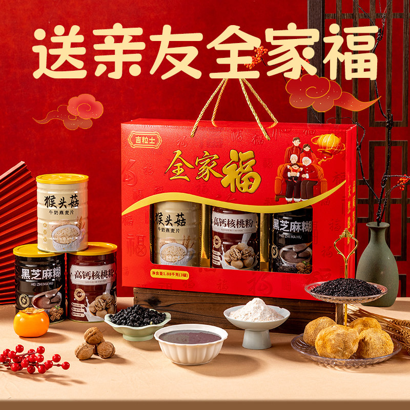 礼盒全家福牛奶燕麦片核桃蛋白粉黑芝麻糊春节礼盒年货送礼三罐装