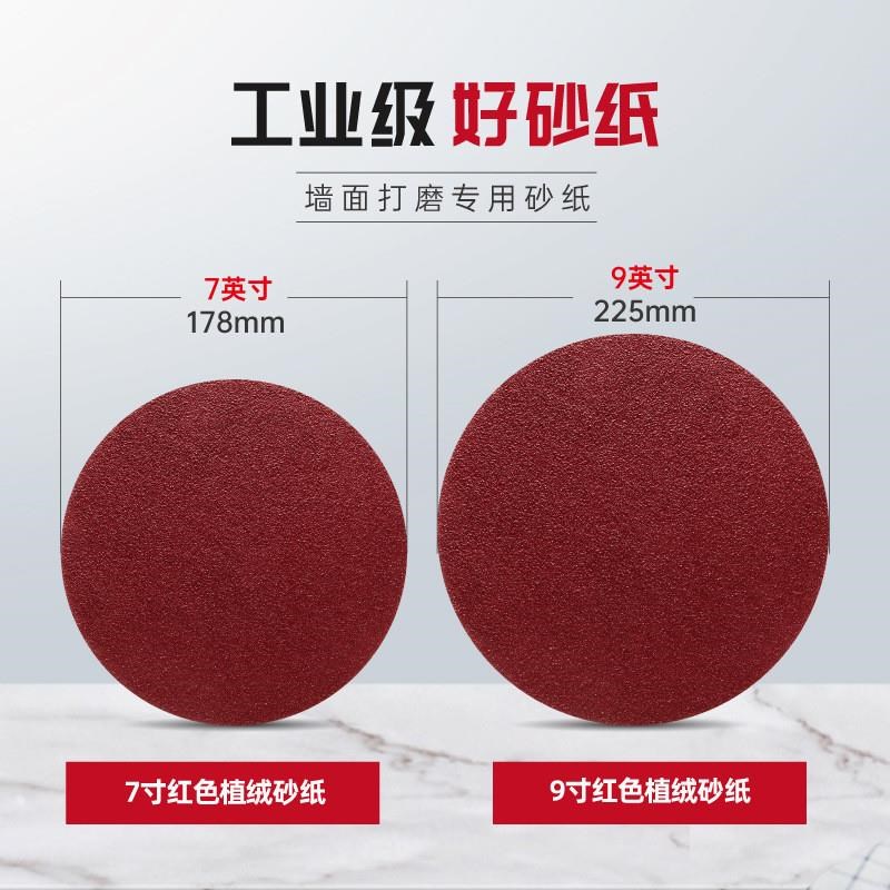 背绒砂纸墙面抛光打磨机圆形砂纸片180/225mm7寸9寸植绒圆盘沙纸