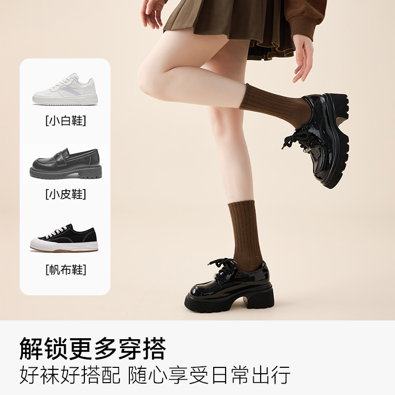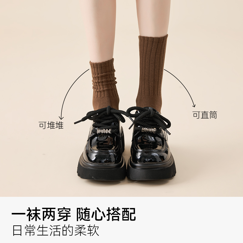 袜子女款秋冬季黑色中筒棉袜防臭配小皮鞋无骨月子长袜冬天堆堆袜