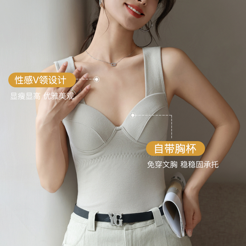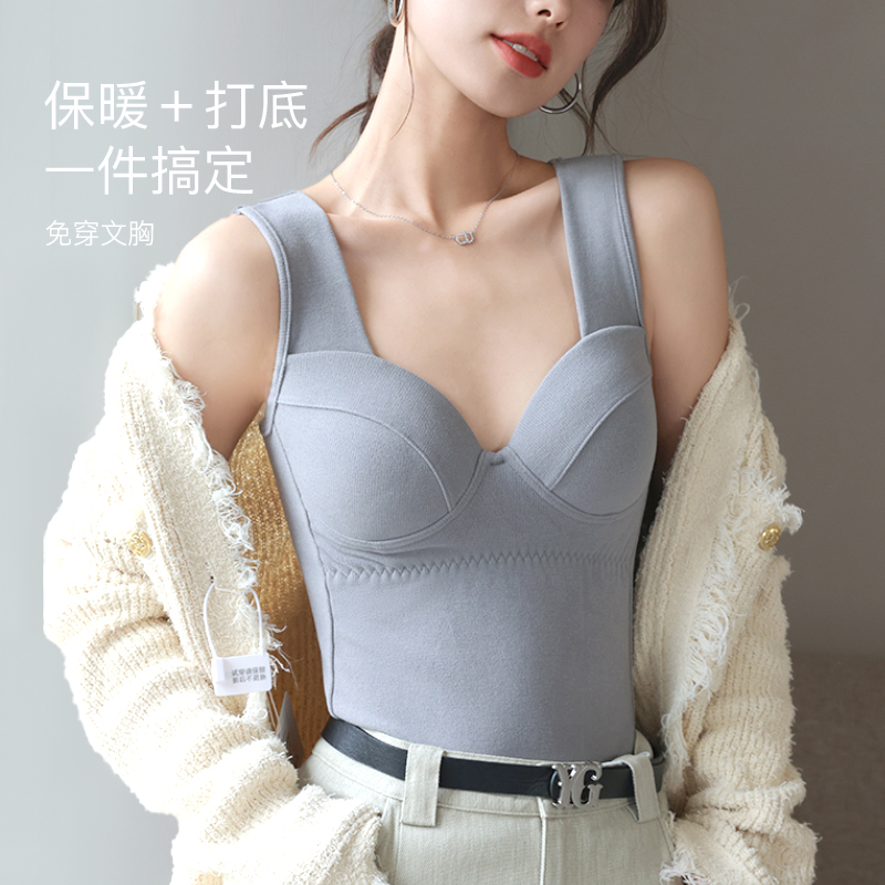 德绒保暖背心女士秋冬季带胸垫内搭新款吊带加绒发热黑色打底上衣