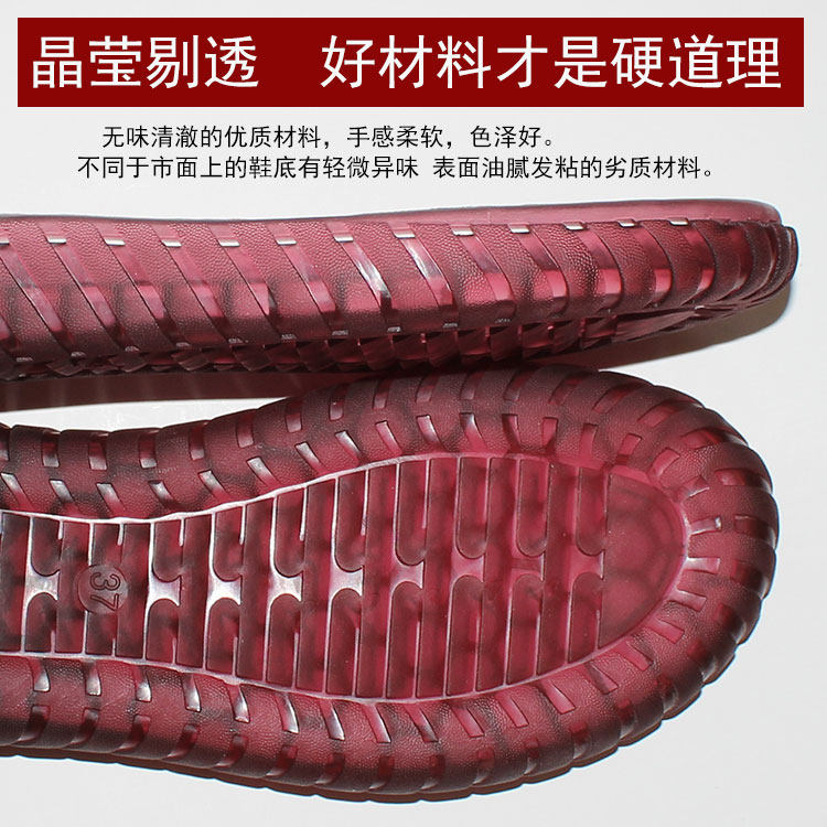 新款防踢线勾鞋底透明水晶鞋底泡芙花牛筋底手工编织毛线拖鞋底
