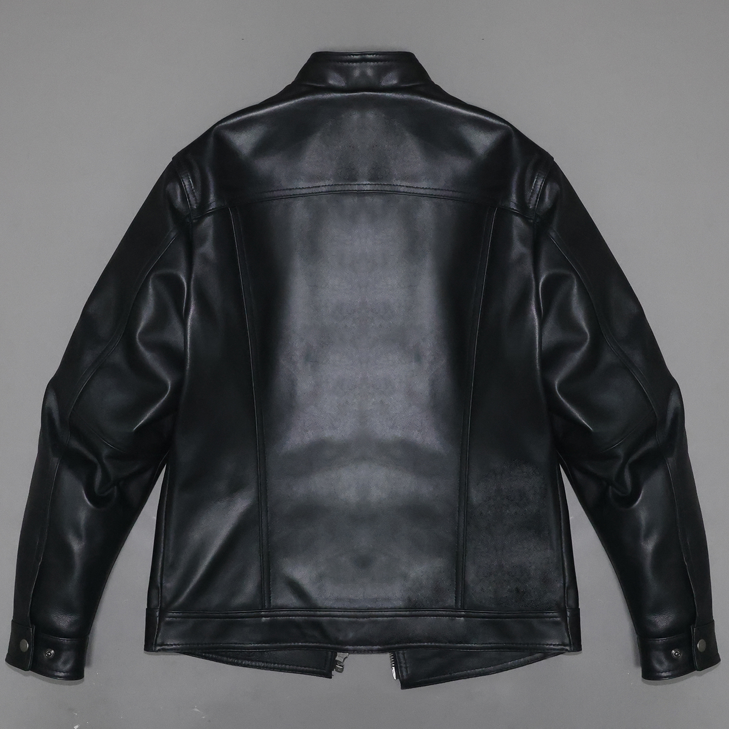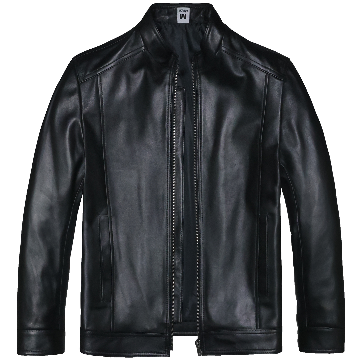 头层绵羊真皮皮衣男修身短款柔软立领简约青年休闲商务夹克外套骆
