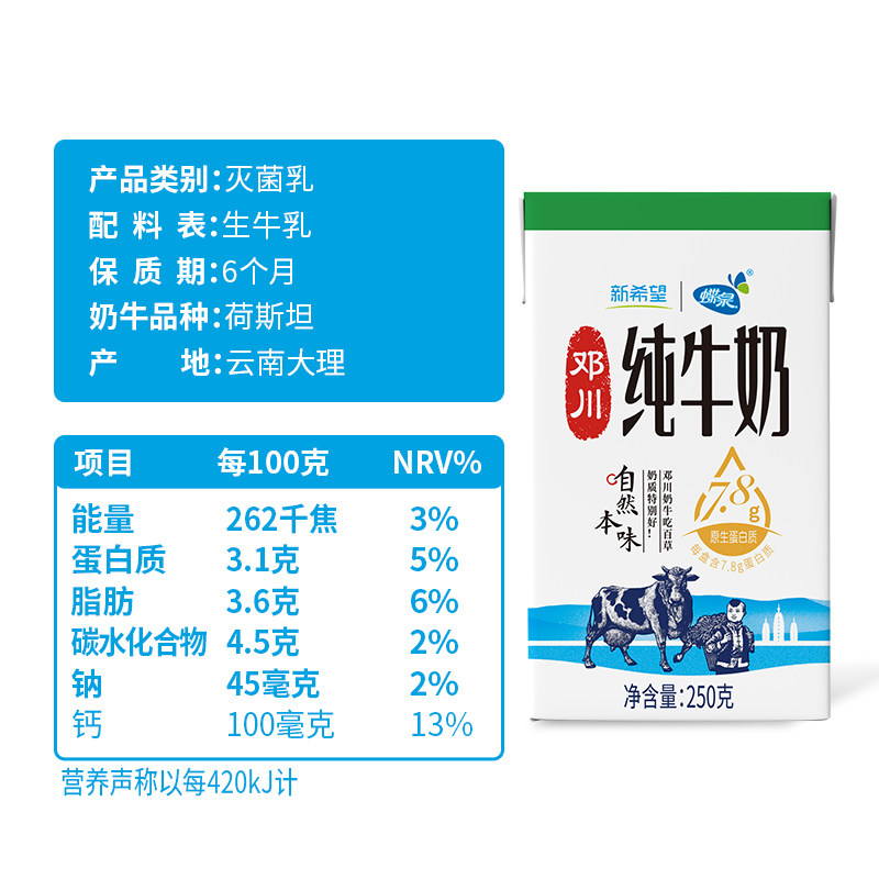 新希望蝶泉邓川灭菌乳纯牛奶2箱