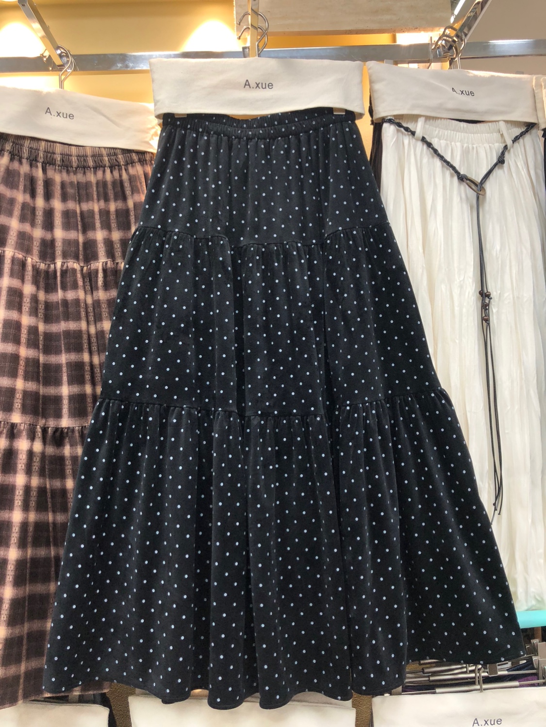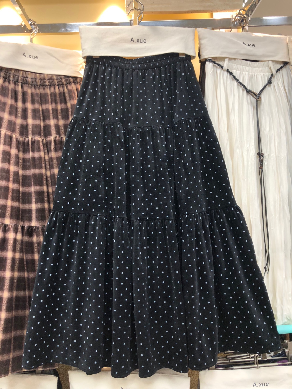 复古咖啡色丝绒波点百褶半身裙女秋冬高腰a字伞裙金丝绒蛋糕长裙