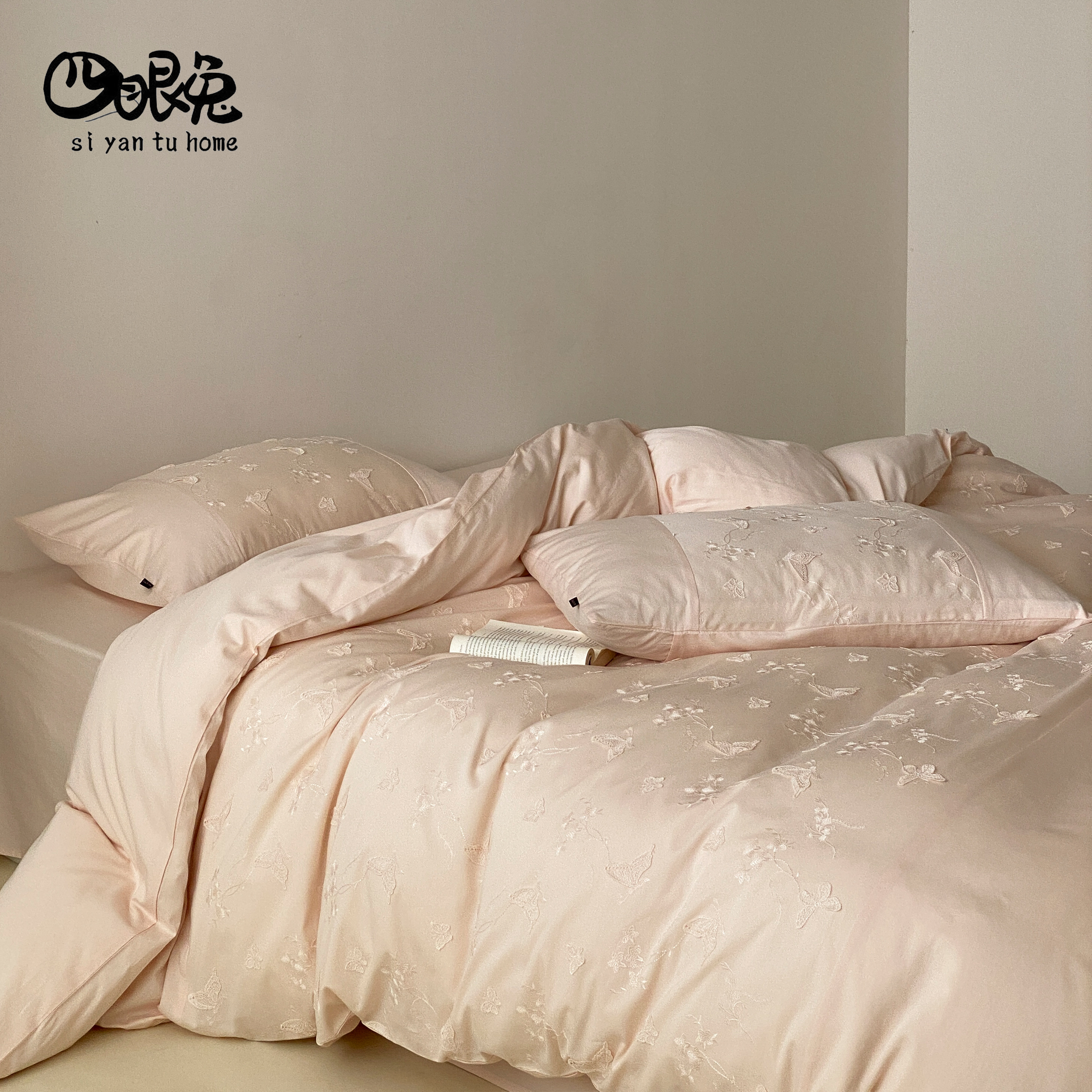 花蝶游园︱60支全棉水洗立体刺绣四件套纯棉少女高端法式被套床品